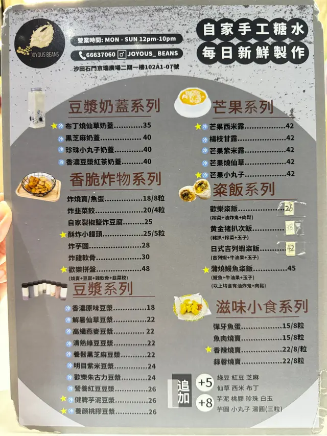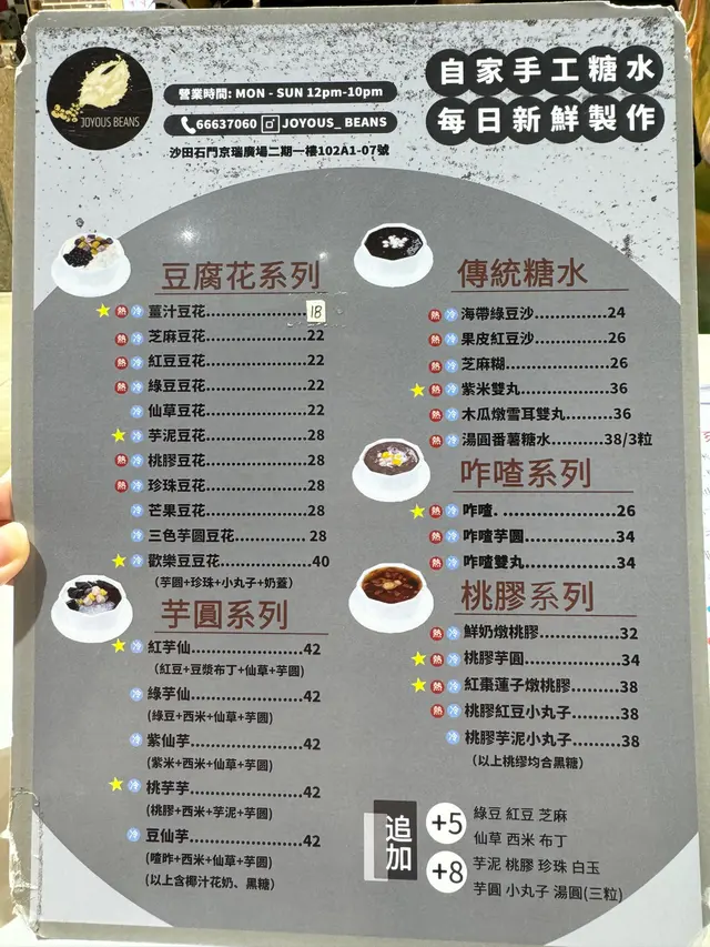 到石門辦點事,在OR 碌一碌看有什麼好食,發現了這間小店,小店由兩位女仕主理,看中了綠芋仙和香辣炸雞翼,問店員可否走甜或少甜,佢話甜度在制造材料時已定,只可幫我減椰奶減甜,但我鐘意椰奶,所以同佢講算啦!等了幾分鐘,糖水來了,比想像中大碗,芋丸煙韌,不是急凍品,仙草滑,底層的綠豆起沙,甜度適中,椰奶很香。之後店員送上香辣雞翼,還貼心地同我講小心熱,25蚊5隻單骨雞翼,其實覺得有點貴,但食完後還是覺得值,辣味剛好,雞翼極脆,肉很嫩滑。埋單67個大洋,有點担心下次會為了這個下午茶來石門…查看更多