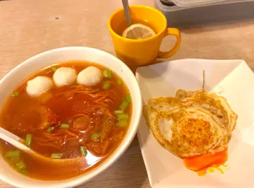 铺头细细间都几多人我就俾佢地的蕃茄汤吸引住想试一试姐姐系厨房叫出黎同我地讲做吾到炒蛋得煎蛋问我地👌🏻吗间铺甘细都吾明点解要系厨房大声甘问我地而吾行出黎同我地讲🌟肠仔粒鲜茄汤通粉炒蛋配牛油方包/牛油多士/烤多热咖啡一般早餐甘,只系佢系即叫即做上桌系热辣辣咁🌟香煎鸡扒蕃茄汤公仔面冻咖啡…查看更多