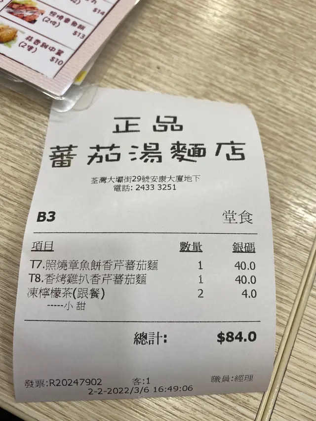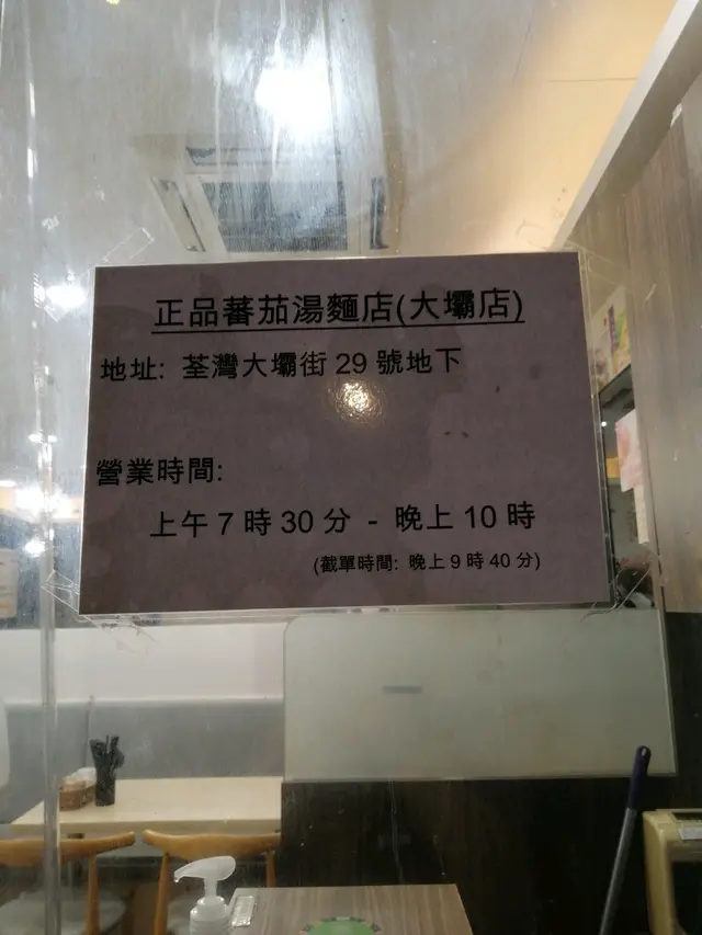 正品蕃茄湯麵店 (荃湾) 网址: https://s.openrice.com/QrLS0p4W800 地址: 香港荃灣大壩街29號安康大廈地舖 电话: +852 24333251