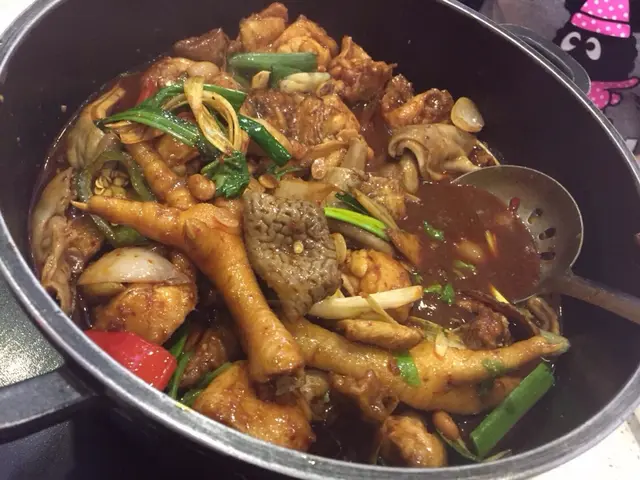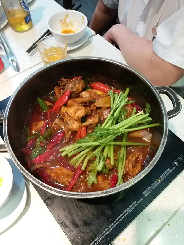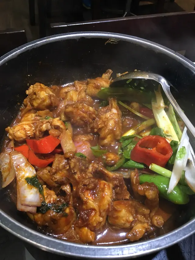 見到食評話呢度個雞煲好出色,所以就過咗嚟試一試。試咗半份招牌麻辣雞煲,叫左微辣,的確係幾惹咪,但係$158半份,不過幾舊雞,仲要每一嚿都好細。性價比就差啲。另外叫多咗一個豉椒排骨煲仔飯,賣相的確好靚仔,不過火候控制得唔好,嚟到唔係得個香味,而係有浸燶味,成個飯底都黑晒,食落啲飯都有浸Gas味