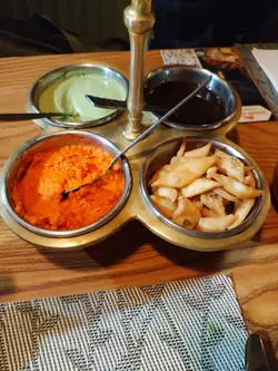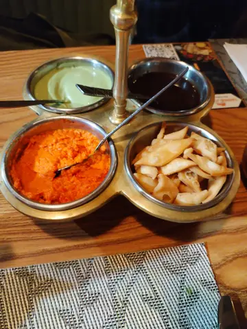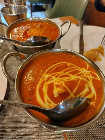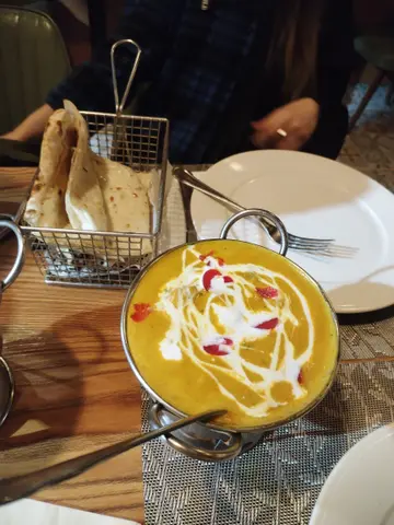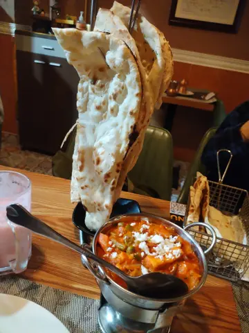 突然想吃咖哩, 于是找来吃货好友一起去开餐 ,中午套餐有不少选择, 有咖哩杂菜 ,羊肉 ,鸡肉 ,牛肉 ,鱼虾 ,配搭烤饼 ,乳酸饮品,正是我们所爱 。餐厅今天还有现场演唱印度音乐 ,两个鲜艳装着的女艺人在唱印度歌,很有特色 ,但音量太大有点嘈 。😅这里的装饰和以前也有所改变, 特别喜欢墙上的树叶画。 选了两个套餐 ,一个土豆杂菜咖哩 ,另一个是羊肉乳酸咖哩 ,加两份薄饼 ,两杯乳酸芒果饮品, 然后坐定欣赏印度音乐。 套餐还包了一小碗的蘑菇忌廉汤, 两份咖哩很快送到 ,份量比较小, 味道不错 ,跟住是大大块的烤饼, 挂在一个钢架上, 共有四块 ,现叫现烤, 热辣辣香喷喷的面饼 ,惹人食欲。 将烤饼掰成小块,伴咖哩吃, 非常特别。 羊肉咖哩特别好味 ,羊肉炆得腍 又鲜味 ,可惜份量太少了 。我们商议下次要专门点一份羊肉才够我们两人分。 乳酸饮品也是非常有特色的 ,酸酸甜甜很香的芒果味, 配著烤饼咖哩吃 ,味道调和 ,浓淡搭配, 咖哩是 健康食品, 要经常吃 ,保持一个健康的状态。😋😋…查看更多