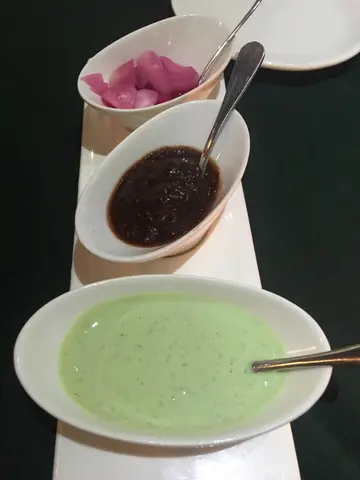 It was a Friday night around 19:00 as I was able to be seated immediately.I ordered the garlic naan, Goan fish curry, palak paneer, and vegetable samosas. Goan fish curry: Tender pieces of white meat fish, the curry actually reminded me more so of a gravy. The curry itself was a little more bland than what I thought it should be. It didn’t even have a hint of coconut flavor which I was really hoping for. The white fish was cooked to perfection. Vegetable samosa: The filling was again slightly bland as it had too many peas and potatoes and not enough herbs and spices. The wrapper was slightly soggy as opposed to crunchy and fresh. Palak paneer: The best dish out of them all. This was really enjoyable. Very thick and hearty compared to others I have had, which I found to really enjoy. The spinach is the predominant flavor until you get a bite of that beautiful paneer cheese. The cheese was very soft and decedent. I found scooping this up with the garlic naan to be very good.Garlic naan: Intense garlic flavor. Didn’t have a fresh doughy chew like I find so enjoyable with naan but it just felt like the naan was a little overworked and tough. It wasn’t bad, but wasn’t the best I’ve ever had. Free dips and sauce: These were awesome! Each one was very flavorful and enjoyable which helped increase my overall experience. The staff was friendly.Overall: 8.2/10 …查看更多