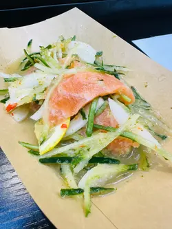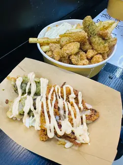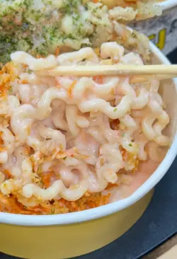 话佢系葵广人气小食店都唔算夸张,事关行过路过见过几次都排嗮队,明明葵广超多嘢食选择,但总有人愿意为美食等待。招牌主打系面食,自选配𩠌再加面底,酱料都有五种选择,排列组合可以有好多尝试。用料好有分量!我拣咗盐酥鸡和鳗鱼搭配的『两𩠌面』,佢嘅盐酥鸡唔似其它地方系做配菜咁零零舍舍三五块,佢系畀足一份𩠌的分量你!让你见到一整碗都系食物,食个大满足!单系食盐酥鸡块,都感觉自己可以半分饱了。鳗鱼好大片,都足量有8片咁多!最后不得不说个秘制正义味道酱料,捞面一流。在葵涌广场二楼小食区,周围一圈好多唔同种类的美食,不过如果讲到食面,真心推介呢间。个卷卷意粉真系好得意呀!