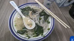 只不过系行完山喺元朗度揾嘢食见到呢间餐厅。虽然唔系第一印象想走入见佢啲饺子几特别就走入去试一试就嗌咗沙葛猪肉饺枸杞汤上海面建议问个店员另外攞一个碗仔夹啲面再加啲汤。按自己嘅需要+侧边𠮶啲辣椒酱咁就唔会污染到佢本身𠮶啲汤因为𠮶啲汤都几好饮食完之后饮埋啲汤都唔会觉得口渴好咸