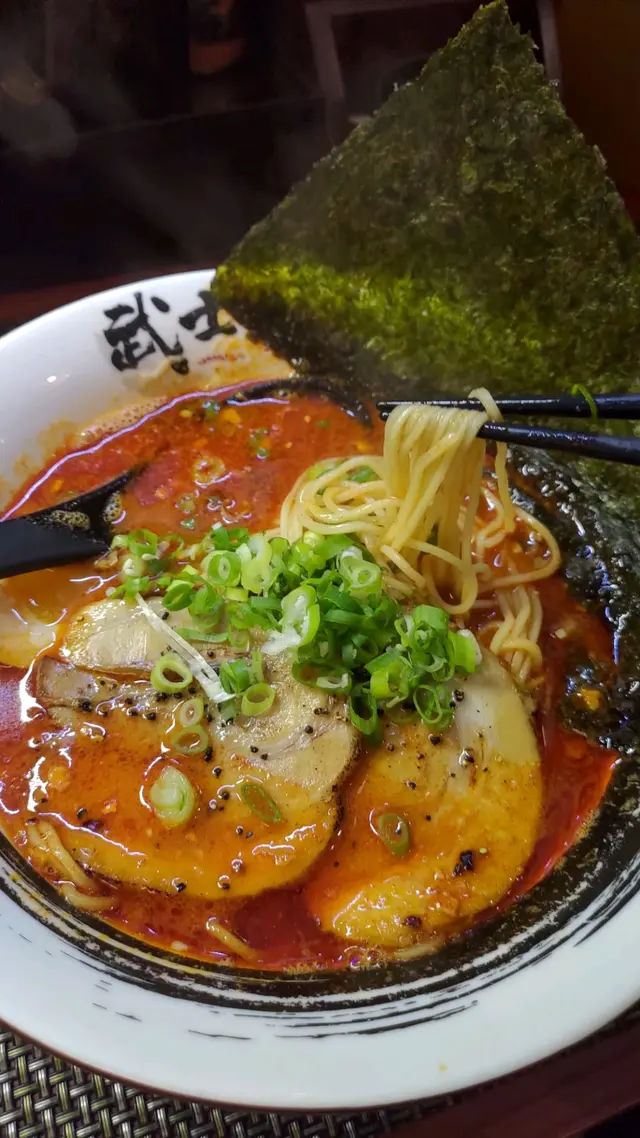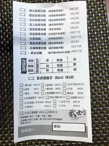 放工行过见到有间拉面舖叫武士拉面一于试下,舖面唔算大一排坐面向店主煮面,企系门口等等咗大约20分钟,终于有位入去望住餐牌,我同朋友心思思每样拉面都想食,谂唔到食边样好老板好客气话帮我哋揸主意问我哋要唔要试下丰臣将军拉面 (四国香葱油汤底) 同足利将军拉面 (黑蒜油猪骨汤底)一于就试下呢两碗面😛有两片日式叉烧、一只流心蛋同紫菜闻落去好香,试下个汤底先先讲四国香葱油汤底好香葱味落咗满满嘅葱,好正呀👍🏻叉烧煮到啱啱好,亦唔会痴牙试埋只流心蛋,味道正常另外,有一樽鱼油放系枱面俾客人加落拉面到,好香鱼油味😋令汤底更加香,谂返起都流口水🤤轮到黑蒜油猪骨汤底汤底真系精华所在,未饮汤底前已经闻到好香浓黑蒜油味仲有少少回甘嘅味道,十分特别😯食过唔同嘅黑蒜油拉面,呢种回甘都系第一次食到,感觉唔错而且啲汤底唔会好似味精汤咁越饮越口渴,好好饮。综合嚟讲,呢间武士拉面真心推介汤底十分好味😋 食完唔会好口渴老板钟意同客人交流,人好nice有机会再去帮衬~…查看更多