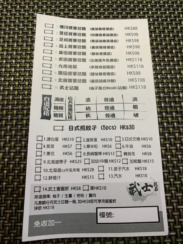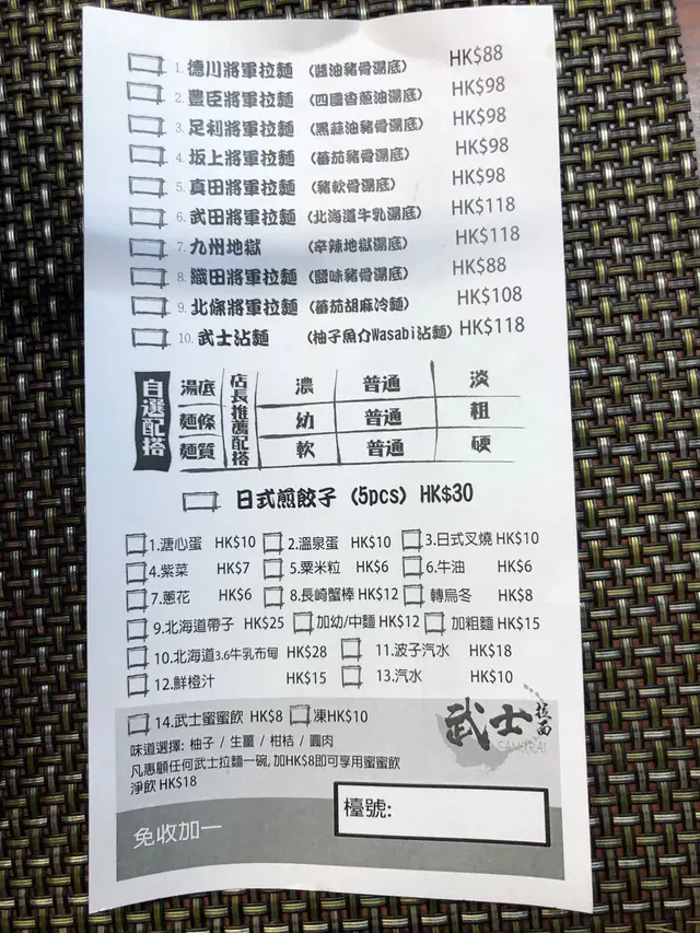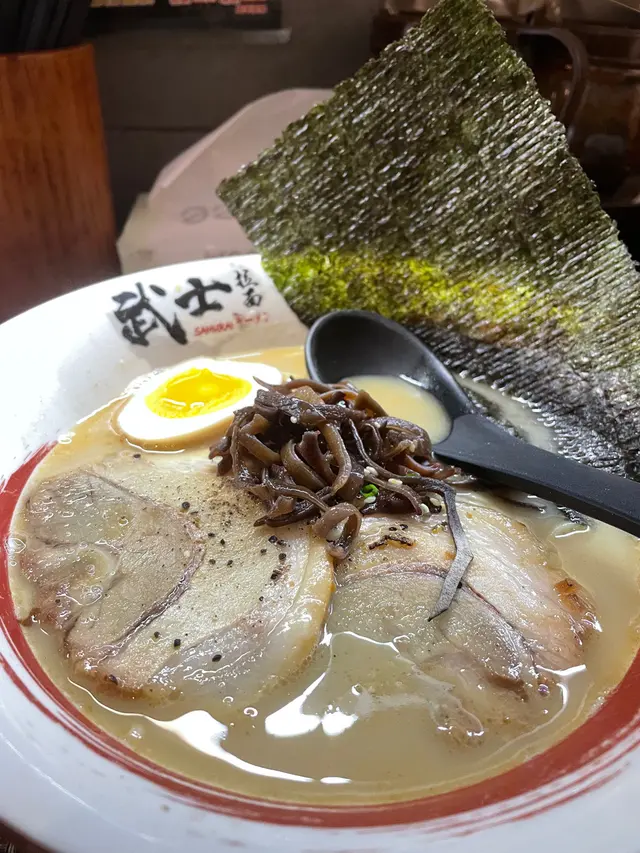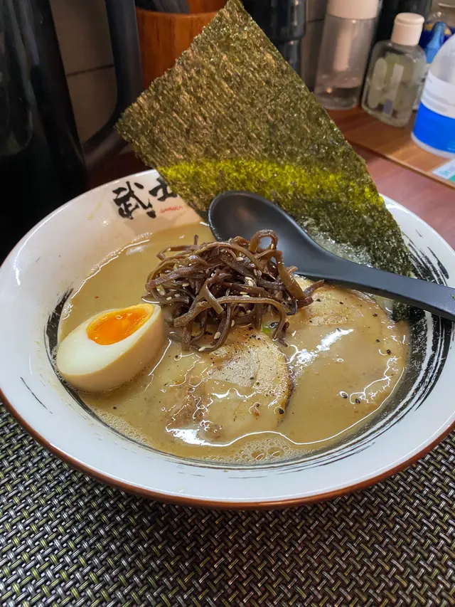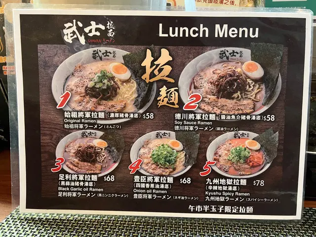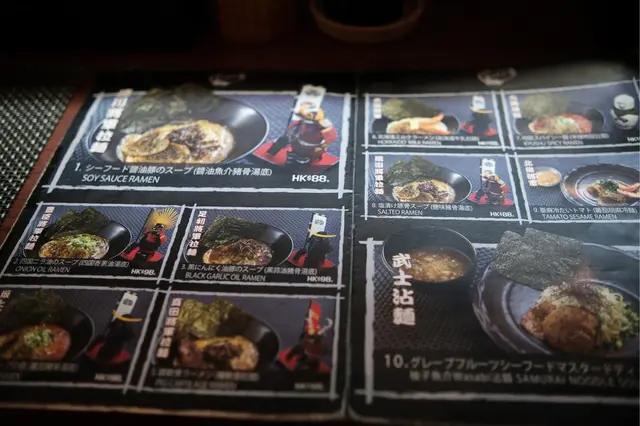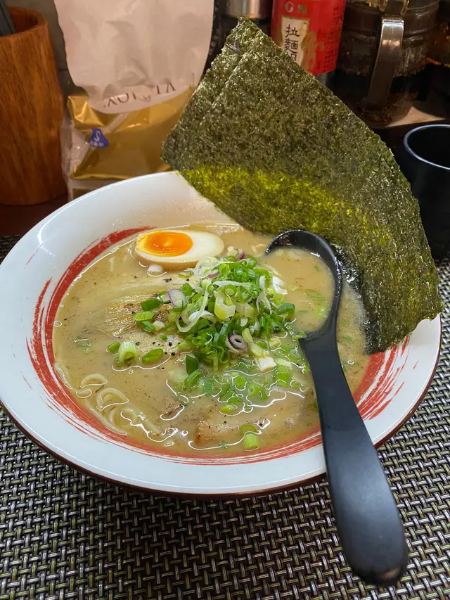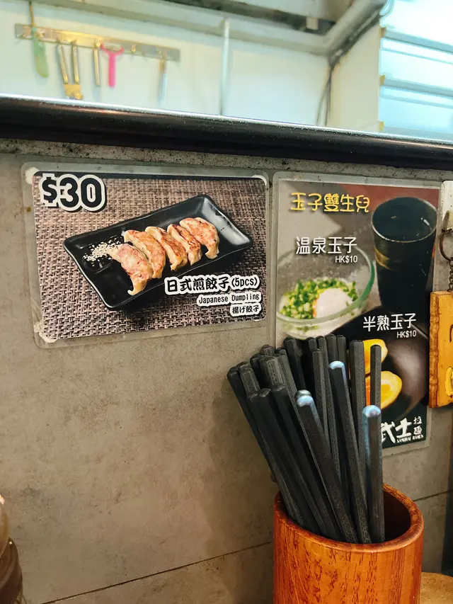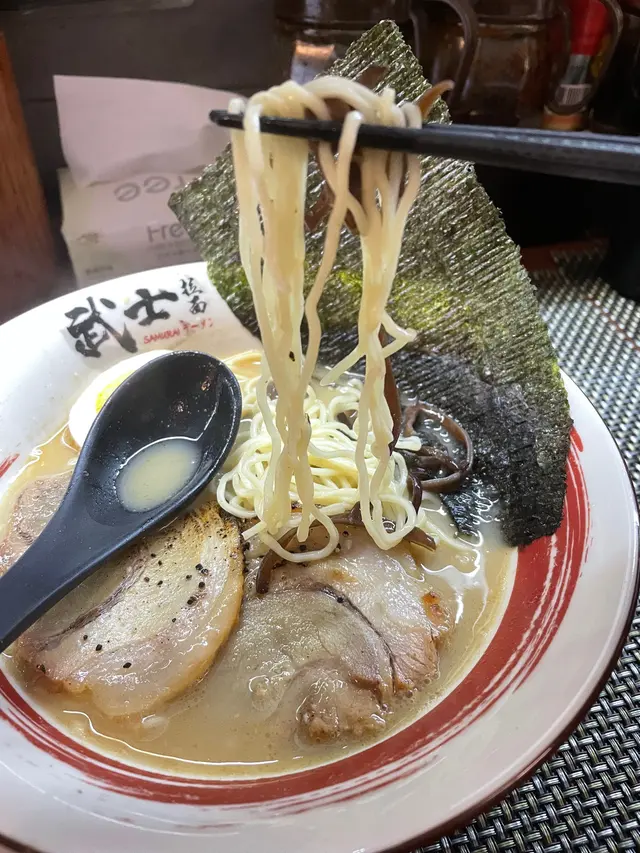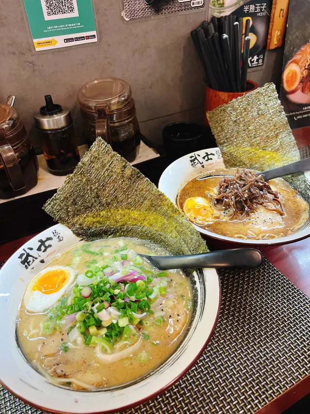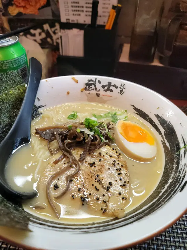 濃厚豬骨武士拉麵(1號)$58柯士甸路是學生們lunch的常去地方,同事以前就在那邊讀書,叫我去試一次。本來打算晚一點去吃,直至得知它將會結業,就決定第二日lunch過去吃。午餐價錢比較便宜,小編就叫了常規的豬骨拉麵,份量正常,有幼麵、火炙豬肉、半份溏心蛋、紫菜、木耳。湯底豬骨湯味尚算濃厚,可以再濃一些,麵條保持少硬,豬肉有點少薄但是肉味可以,溏心蛋嫩滑流心。另外,店主有推薦自家製魚介油,會令豬骨湯更加香濃,的確如此,每一口都有微微的鮮味。味道雖然未到一鳴驚人,但是看著老闆跟客人的互動,即使面臨結業,老闆依然樂觀,有時候生活就是這樣,總有起伏不平,但是心態決定一切。既然改不了現實,就改變心態。…查看更多