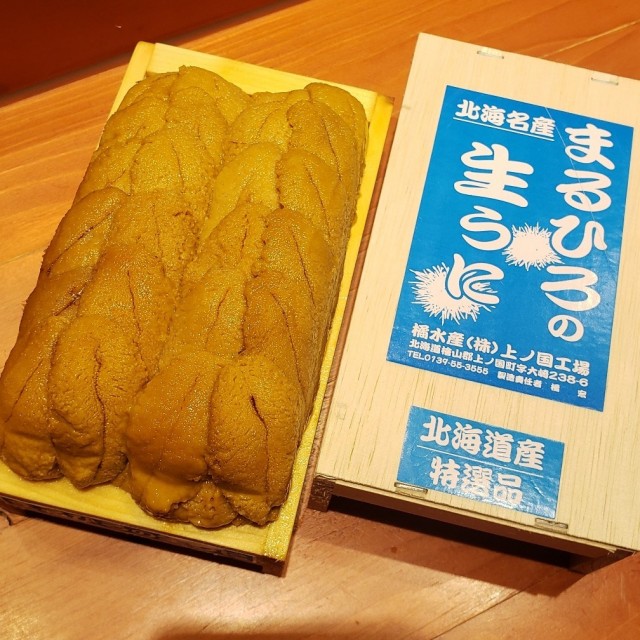 一直都有留意武馆, 最近见到有原只紫针海胆同时不知鲑鱼, 所以就即刻订位去食~中间个件好似三文鱼既就系时不知鲑鱼啦! 师傅解释因为鲑鱼正常只会系秋天游返去北海道产卵, 而时不知鲑鱼如其名, 就系忘记了时间既鲑鱼。明明未系时候产卵, 所有养份仲谷左系身体入面, 但提早左返北海道比渔夫捉到, 所以佢个味道系比平时既乌鲑更浓, 真系一食难忘