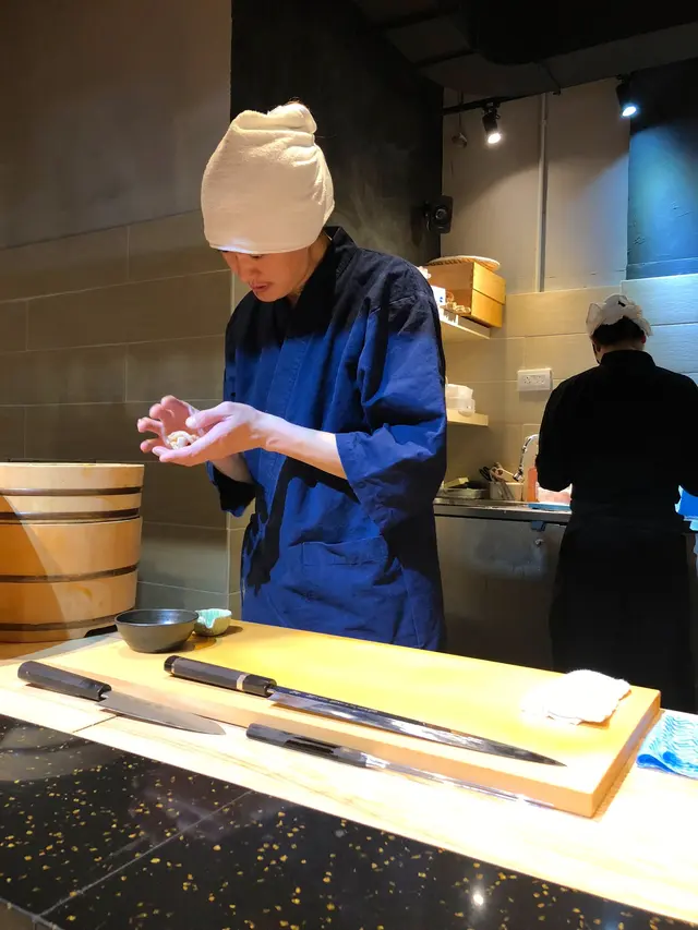 廚師每次出嘢嘅時候只係好簡單講下條魚叫咩名同喺邊度呢嚟, 我印像中佢好似冇講過食落去有咩口感, 烹調方法, 食後會有咩感覺。 簡單嚟講,我覺得佢冇話好詳細介紹每一道餸。食飯途中聽到隔離枱話最尾有烏冬會有蔥, 因為我太太唔食蔥同埋個廚師冇問我哋唔食啲咩, 所以到壽司嗰一part嘅時候我已經主動同廚師講話我太太唔食蔥,如果後面有啲咩有蔥嘅時候最好走咗去。 點知道最後嗰個烏冬都係有好多蔥, 最無話可說嘅係個廚師見到我哋揀蔥,就扮睇唔到。 如果我係個廚師, 我就會主動埋去問使唔使換過一碗或者話唔好意思唔記得咗。