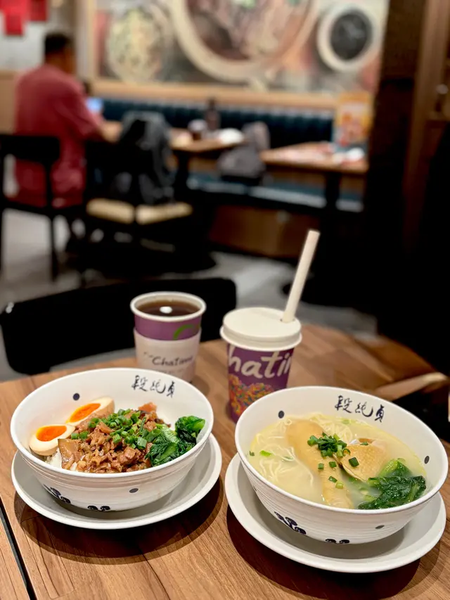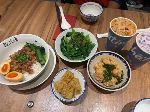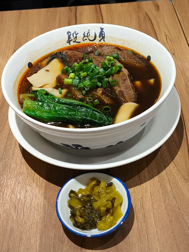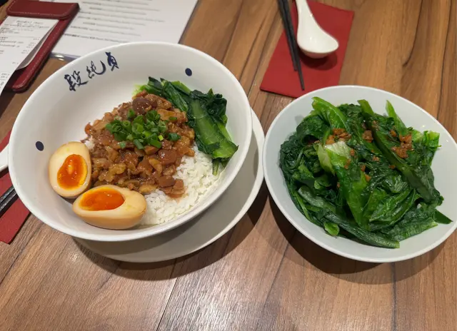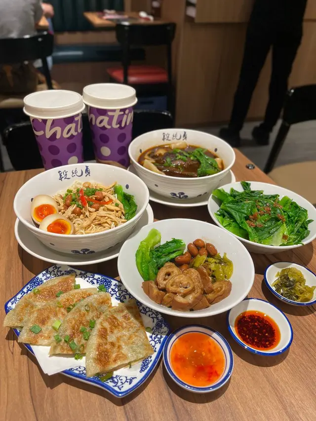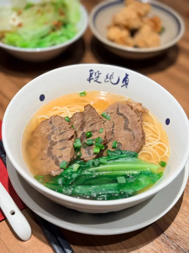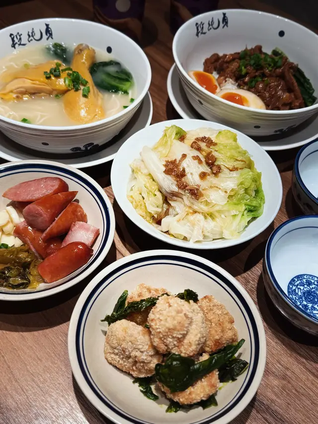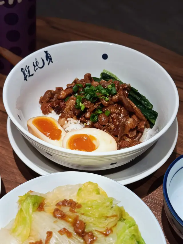 朋友和我喜歡吃台灣菜,聽聞台灣過江龍<段純貞>是一間很不錯的台灣餐廳,於是與朋友來到位於旺角MOKO新世紀廣場<段純貞>吃晚餐。餐廳位置很多,環境舒適。我們看了餐牌後,點了一份蒜醬油麥菜、兩款小菜 - 鹽酥雞和三星蔥肉鍋餅、兩份主菜 - 招牌紅燒腱心牛肉麵和台式肉燥飯及兩杯飲品- 熱茉莉綠茶和熱紫香芋泥特調。蒜醬油麥菜~油麥菜份量多,足夠兩人吃。翠綠油麥菜很爽甜,蒜醬味又香濃。鹽酥雞~鹽酥雞炸至外層酥脆,仍保留嫩滑肉質,九層塔又炸得香脆,好像吃薯片。三星蔥肉鍋餅~三星蔥是宜蘭特產,喜歡吃蔥的粉絲必選這道小菜。煎至金黃酥脆薄餅皮,包著香氣四溢的三星蔥肉餡,真是很好吃。招牌紅燒腱心牛肉麵~牛骨熬煮數小時的湯底非常濃郁,香濃藥材味,禁不住一口接著一口喝。三件厚切腱心牛肉,肉質軟腍,肉香醇厚,非常入味。選了手工麵,外形似刀削麵,麵質卻又比刀削麵厚身彈牙,有掛汁效果。一小碟酸菜,是用來提升牛肉麵味道。牛肉麵不愧是招牌菜,造得出色。台式肉燥飯~肉燥份量充足,與飯拌勻,毎一口都能吃到肉燥。肉燥肥瘦均勻,配上糖心蛋和油麥菜,非常美味。熱茉莉綠茶和熱紫香芋泥特調~服務員很友善,提問是否要減糖,讓我們意識到可調效糖份量。茉莉綠茶,綠茶味香濃;紫香芋泥顏色很美,芋泥綿密,很飽肚。兩杯飲品都很好喝。…查看更多