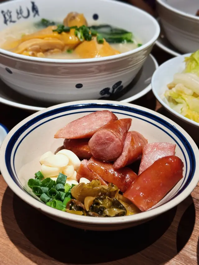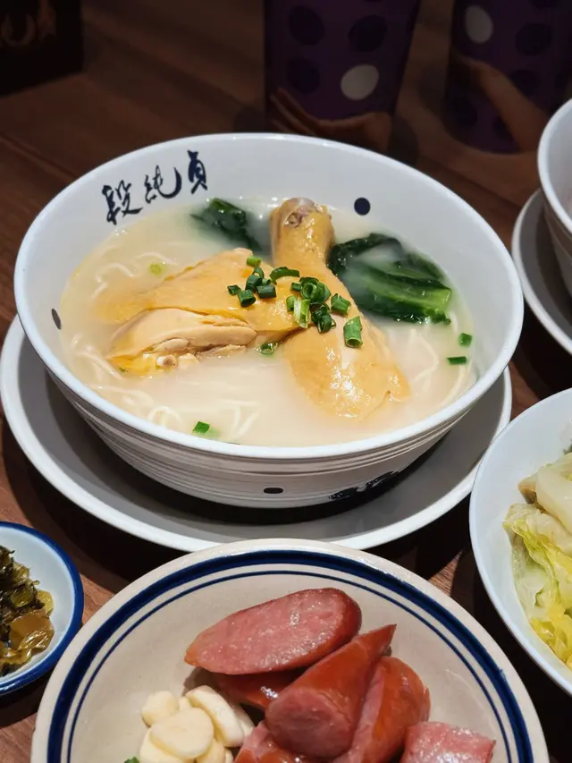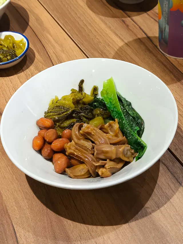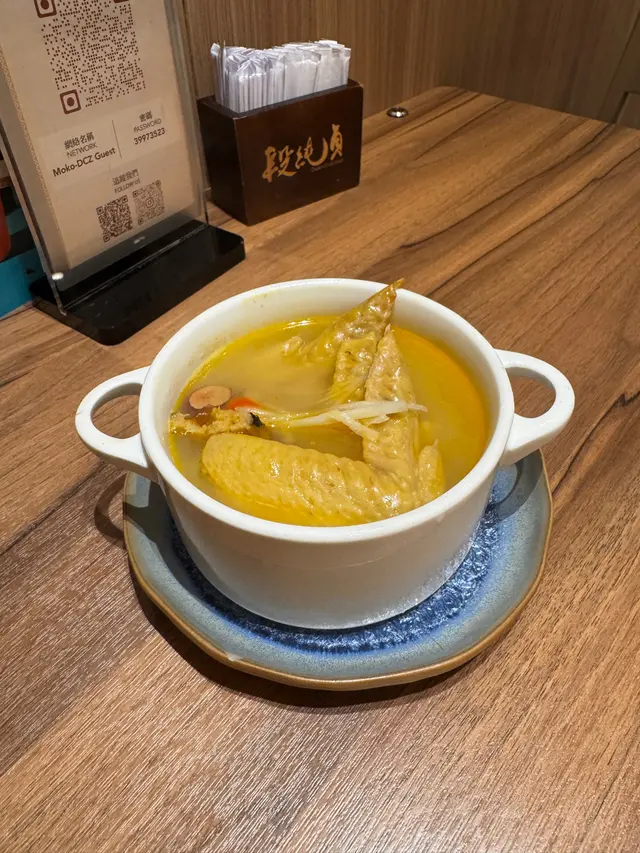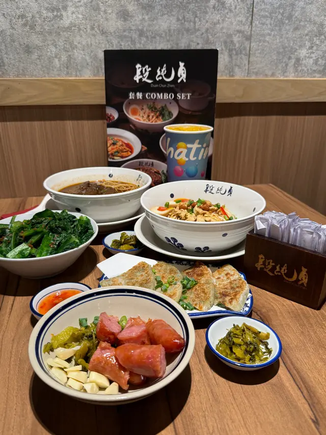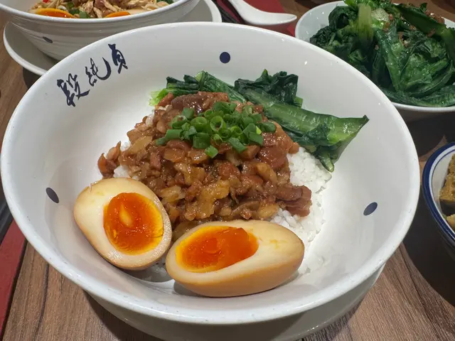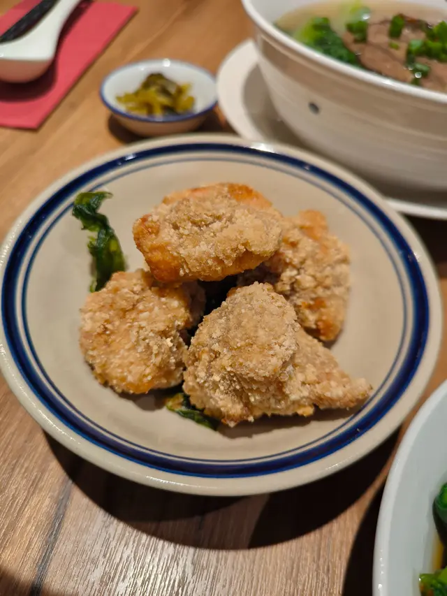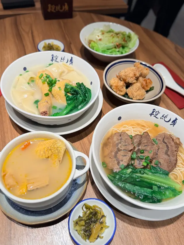 朋友和我喜歡吃台灣菜,聽聞台灣過江龍<段純貞>是一間很不錯的台灣餐廳,於是與朋友來到位於旺角MOKO新世紀廣場<段純貞>吃晚餐。餐廳位置很多,環境舒適。我們看了餐牌後,點了一份蒜醬油麥菜、兩款小菜 - 鹽酥雞和三星蔥肉鍋餅、兩份主菜 - 招牌紅燒腱心牛肉麵和台式肉燥飯及兩杯飲品- 熱茉莉綠茶和熱紫香芋泥特調。蒜醬油麥菜~油麥菜份量多,足夠兩人吃。翠綠油麥菜很爽甜,蒜醬味又香濃。鹽酥雞~鹽酥雞炸至外層酥脆,仍保留嫩滑肉質,九層塔又炸得香脆,好像吃薯片。三星蔥肉鍋餅~三星蔥是宜蘭特產,喜歡吃蔥的粉絲必選這道小菜。煎至金黃酥脆薄餅皮,包著香氣四溢的三星蔥肉餡,真是很好吃。招牌紅燒腱心牛肉麵~牛骨熬煮數小時的湯底非常濃郁,香濃藥材味,禁不住一口接著一口喝。三件厚切腱心牛肉,肉質軟腍,肉香醇厚,非常入味。選了手工麵,外形似刀削麵,麵質卻又比刀削麵厚身彈牙,有掛汁效果。一小碟酸菜,是用來提升牛肉麵味道。牛肉麵不愧是招牌菜,造得出色。台式肉燥飯~肉燥份量充足,與飯拌勻,毎一口都能吃到肉燥。肉燥肥瘦均勻,配上糖心蛋和油麥菜,非常美味。熱茉莉綠茶和熱紫香芋泥特調~服務員很友善,提問是否要減糖,讓我們意識到可調效糖份量。茉莉綠茶,綠茶味香濃;紫香芋泥顏色很美,芋泥綿密,很飽肚。兩杯飲品都很好喝。…查看更多