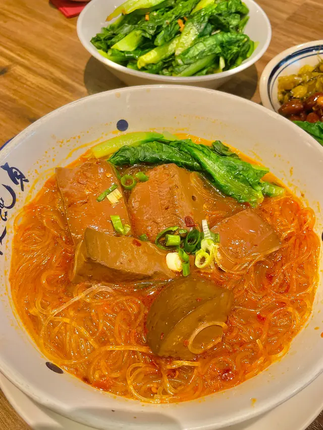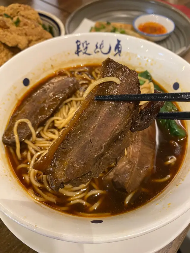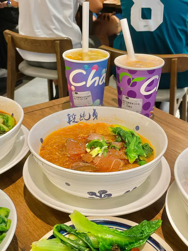 台灣牛肉麵過江龍🍜.ᐟ.ᐟ曾被「台灣美食教父」譽為5★牛肉麵紅燒湯底特別係,加左豆瓣醬增添風味!較鹹香,不過飲落藥材味吾算特出清湯望落好清淡,但其實濃而唔膩,仲有少少牛骨香~麵可揀手工寬麵/細麵個人幾中意手工麵好厚身,食落較硬身,似特粗嘅刀削麵,有咬口!經典細麵就軟淋,較索湯啲!牛肉麵其實減肥都可以食,以下2樣都係低脂之選~⭐️100g 牛腱心: 20.8p 2.9f⭐️100g 牛𦟌: 19.3p 2.8f牛腱心好厚身,已經滷得好入味,中間有膠質,食落腍中帶嚼勁牛𦟌好大塊,筋肉相間,佢反而仲淋身!牛肉份量足,Gym友都滿足🤍!小食幾推介滷菜🤍超豐富~雞髀菇滑、豆乾,花生滷到好淋香口,滷豆腐、麵筋吸晒精華!佢哋珍奶都幾正🤍奶香濃郁,黑糖個款固定甜度就較甜,珍珠煙韌吾硬,叫少甜就平衡得好好♡茶香再出啲更好~°. ⑅♡⑅ °. +. °. ⑅♡⑅ °. +. °. ⑅♡⑅ °. °. ⑅♡⑅ °. +★ 台式滷菜 $58 ♥︎♥︎♥︎♥︎♡★ 鹽酥雞 $48 ♥︎♥︎♥︎♡♡★ 紅燒腱心牛肉麵 $86 ♥︎♥︎♥︎♥︎♡★ 清燉牛𦟌麵 $82 ♥︎♥︎♥︎♥︎♡★ 太極厚奶 $34 ♥︎♥︎♥︎♥︎♡★ 黑糖珍珠鮮奶 $38 ♥︎♥︎♥︎♡♡…查看更多