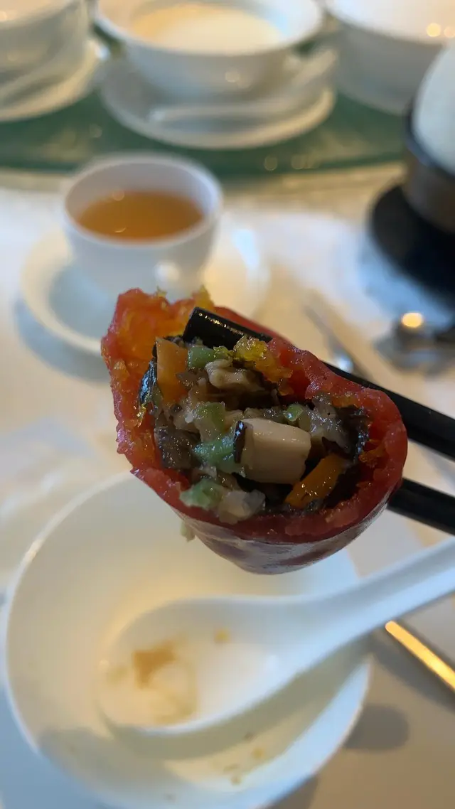由於這裏環境較清靜,亦不想再其他酒樓太擠迫,故此找來這家,叫了一個四人餐,HKD 2588 加茶錢,調整再加10%. 由於有兩位老人家,故此不想叫六人餐,選擇四人餐。四人餐食物款式少,一個乳豬,义燒,海節小拼盤每人一件,以為有龍蝦食及金湯燕窩湯,點知金湯海鮮燕窩淡到不得了,燕窩食唔出,龍蝦四個人每個人都分唔到兩舊龍蝦肉,味道又淡,肉質完全不彈牙,好細碟😭😭😭. 清湯龍躉還可以,但龍躉這種魚絕對不值高價。跟住半隻燒雞唔係大,四人啱啱好,最後就係嗰糖水。成餐就係咁多嘢,這個四人餐真係比四位纖瘦女生食還算啱啱好,份量少,成個餐很少款式,味道完全平平無奇,絕對唔係酒店級數,我本身對食物包容度都算高,但呢餐咁嘅價錢,絕對一定要提出嚟提醒各位。查看更多