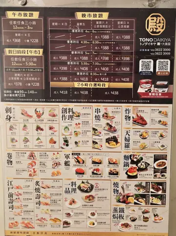 工作左成个星期,终于挨到星期五啦😮💨!紧系要食餐丰富好味嘅晚餐哄下自己啦🤤!今次又去左殿大喜屋食放题🍣,贪呢到咩款嘅日本菜都有,有刺身、炸物、寿司、烧物连炒蟹焗蟹🦀都有!最正系任食冻波士顿龙虾🦞!!❤️冻海鲜有冻波士顿龙虾、龙虾钳、花雕醉鲍鱼等等!波士顿龙虾肉质新鲜爽弹鲜甜,虾头仲有甘香虾膏😍,龙虾钳大大个啖啖肉,仲有好多汁水。🧡刺身有三文鱼刺身🐟、吞拿鱼腩、牡丹虾、甜虾、赤背、带子等等。每样都非常新鲜鲜甜,仲要好大方全部都大大块,口感一流!💛熟海鲜好多选择,有盐焗蟹、避风塘炒蟹、蛏子、豉椒炒蚬、盐焗大头虾等等🤩,日式放题有咁多款同高质海鲜食,简直系翻本之选‼️盐焗蟹蟹膏甘香🦀,蟹肉一梳梳白雪雪,鲜甜美味👍🏻!避风塘炒蟹好有大排档风味,又辣又惹味!盐焗大头虾虾头好多膏🦐,虾肉爽弹😋!💚仲有多款寿司军舰任君选择!最出色系海胆吞拿鱼Taco✨,吞拿鱼蓉入口即溶🐟,加上鲜甜嘅海胆同炸脆咗嘅紫菜,非常滋味❣️🩵熟食推介鲍鱼捞饭、乳鸽同羊架!必叫鲍鱼捞饭,鲍鱼入味弹牙烟靭,加上美味嘅鲍鱼汁用嚟捞一碗饭真系冇难度😆!乳鸽外皮非常脆,肉质鲜嫩多汁💦!羊架串烧好惹味!💜甜品控一定唔可以错过炖木瓜鲜奶、巴斯克蛋糕🍰、葡挞、大细马卡龙、Häagen-Dazs雪糕及多款雪糕🍨😍📍殿 大喜屋尖沙咀金巴利道26号1楼…查看更多