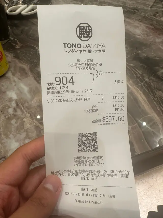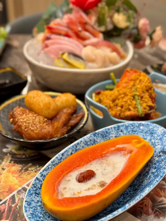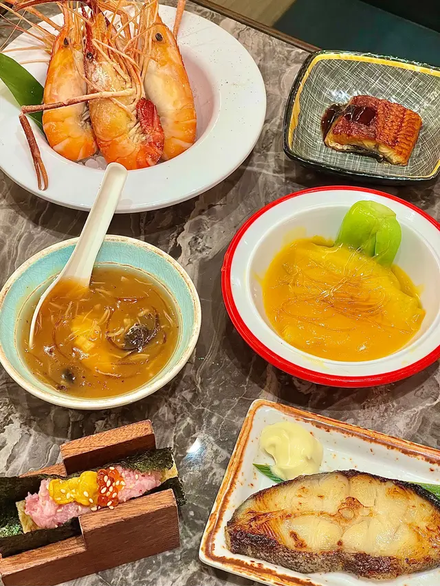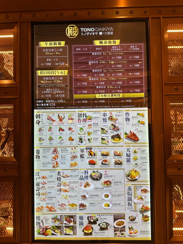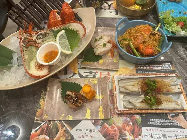 工作左成個星期,終於捱到星期五啦😮💨!緊係要食餐豐富好味嘅晚餐哄下自己啦🤤!今次又去左殿大喜屋食放題🍣,貪呢到咩款嘅日本菜都有,有刺身、炸物、壽司、燒物連炒蟹焗蟹🦀都有!最正係任食凍波士頓龍蝦🦞!!❤️凍海鮮有凍波士頓龍蝦、龍蝦鉗、花雕醉鮑魚等等!波士頓龍蝦肉質新鮮爽彈鮮甜,蝦頭仲有甘香蝦膏😍,龍蝦鉗大大個啖啖肉,仲有好多汁水。🧡刺身有三文魚刺身🐟、吞拿魚腩、牡丹蝦、甜蝦、赤背、帶子等等。每樣都非常新鮮鮮甜,仲要好大方全部都大大塊,口感一流!💛熟海鮮好多選擇,有鹽焗蟹、避風塘炒蟹、蟶子、豉椒炒蜆、鹽焗大頭蝦等等🤩,日式放題有咁多款同高質海鮮食,簡直係翻本之選‼️鹽焗蟹蟹膏甘香🦀,蟹肉一梳梳白雪雪,鮮甜美味👍🏻!避風塘炒蟹好有大排檔風味,又辣又惹味!鹽焗大頭蝦蝦頭好多膏🦐,蝦肉爽彈😋!💚仲有多款壽司軍艦任君選擇!最出色係海膽吞拿魚Taco✨,吞拿魚蓉入口即溶🐟,加上鮮甜嘅海膽同炸脆咗嘅紫菜,非常滋味❣️🩵熟食推介鮑魚撈飯、乳鴿同羊架!必叫鮑魚撈飯,鮑魚入味彈牙煙靭,加上美味嘅鮑魚汁用嚟撈一碗飯真係冇難度😆!乳鴿外皮非常脆,肉質鮮嫩多汁💦!羊架串燒好惹味!💜甜品控一定唔可以錯過燉木瓜鮮奶、巴斯克蛋糕🍰、葡撻、大細馬卡龍、Häagen-Dazs雪糕及多款雪糕🍨😍📍殿 大喜屋尖沙咀金巴利道26號1樓…查看更多
