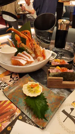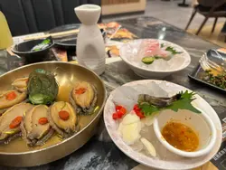 聚旧日Part 2,夜晚去食放题,拣了殿大喜屋,之前食过尖沙咀果间都几正,今次去帝京果间,优惠时段比人霸晒,自选时段都照杀,Book左3位。 20:15-10:15,自选时段任食两小时。餐厅面积颇大,楼底高有空间,3人坐的位子十分阔落舒适。自助区,落左单之后即轮流出去睇下有咩食,饮品有好多选择,梅酒、清酒及红酒都有(但都系偏淡味),有汤水及糖水果下正。冷盘、热盘小食种类都多,甜品亦唔少,连靓靓马卡龙都有,雪糕都有好多款同软雪糕都有。放题第一盘刺身摆盘一定系最靓,即打卡,刺身多款,要了甜虾、带子、金枪鱼腩、油甘鱼、三文鱼及松叶蟹脚,新鲜肥美,当中喜欢三文鱼及甜虾。鲟鱼籽酱,预到系咩料但都想试下,咸咸地唔太有鲜味,好奇一试。海胆拖罗鳕鱼干手卷,卖相吸引,有吞拿鱼蓉、海胆及鱼籽,馅料十足,味道咸鲜口感丰富,美味。花菇红烧鲍鱼,卖相吸引,有埋西兰花作配菜,鲍鱼口感弹牙,配合个汁味道浓郁,花菇软腍。花雕醉鲍鱼,食落有少许酒味,但味道较淡,口感较韧。金汤烩花胶,必食,感觉名贵,3人份摆晒系一碗到变左感觉好多,花胶大件厚身,口感爽口弹牙黏稠,少许鲜味,食一件都好饱肚。鲍鱼皇帝蟹黄粥,个色水卖相不俗但唔见有蟹盖(因见隔离枱有),粥底几绵味道鲜甜。 皇牌烧乳鸽王,卖相都几靓仔,皮脆肉嫩又香口。川烧珍宝鲜蚝烧,烧蚝肥美饱满,口感鲜美又多汁,加上大量的蒜好惹味。 泰式金不焕炒蚬,蚬肉饱满,香口惹味。油盐焗奄仔蟹,蟹膏甘香,蟹肉鲜甜,不俗。 酥炸桶蚝,个炸皮大厚蚝太细,食落太油味道一般。殿堂级铁板鹅肝厚多士,厚身大件,味道甘香油润,多士香脆。虫草花乌鸡汤,饮下汤水,都几油。自助区小食。甜品都几多可爱造型,好多人推介花花马卡龙,打卡之选,试了玫瑰味,口感酥脆带少许烟韧,淡淡的玫瑰香味,唔太甜,睇得又食得。柿的糯米糍,外皮软糯,入馅全是cream太甜。 仓鼠造型的芒果布甸,好可爱。狂食雪糕,Häagen-Dazs冧酒提子、焦糖脆饼及牛奶焦糖和肉桂油条,冧酒提子好味就梗,后者两款都几好味,系甜左点。Mövenpick柠檬青柠雪葩,酸酸地清香味道。 食物味道不俗,坐得舒适,服务正常,上菜都算快,愉快的一餐。…查看更多