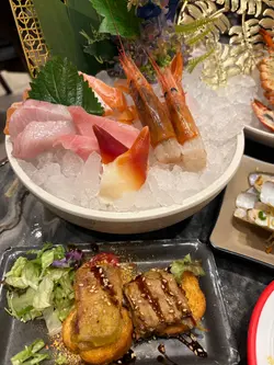 正好明天系公众假期,可以好好犒赏自己一下。帝京向来以高质食物闻名,果然冇失望。BOOK唔到繁忙时间,估唔到8:30都好FULL,一入到餐厅,即刻QR CODE点返个刺身拼盘先,赤海虾、甜虾、赤贝、北海道鲜带子、油甘鱼、三文鱼、泰式虎虾、蜜柑鲷薄切,样样都好新鲜,特别系鲟鱼籽酱同北海道鲜带子,鲟鱼籽咸香,带子又滑又嫩,食落口感真系一流。最啱我心水嘅系波士顿龙虾,啖啖龙虾肉,搭配特制酱汁,真系好享受。蒜蓉粉丝蒸蛏子王,蛏子新鲜得嚟又多汁,蒜香味配上粉丝,简直系完美搭档!仲有避风塘炒蟹,用嘅系新鲜蟹,香辣味十足,非常惹味。寿司方面,海胆拖罗鳕鱼干手卷,海胆滑溜配上鳕鱼干,口感好丰富!还有牛油果蟹肉最中饼,牛油果同蟹肉嘅搭配,味道好得意,细细件食多几件都无负担。仲有一品料理嘅美味,烧香草羊鞍同酱烧牛肉都好正!羊肉香气四溢,牛肉又嫩又滑,明太子玉子烧嘅口感柔滑,真系好好味。总括来讲,帝京呢个海鲜任食每一道菜都真系用心之作。下次有机会,我一定会再来探索多啲美味!…查看更多