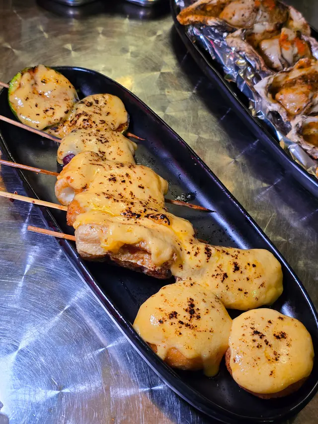 📍呢間串燒店散發出滿滿港式情懷,招牌都用上港式花牌,離遠已經見到👾除咗裝修有好多香港標誌性擺設🪩仲推出咗個維他奶聯乘串燒套餐, 維他奶就話飲得多啫!🫣🌀 維他奶芝士系列套餐配合返維他奶大人細佬都啱既形象,食物都好多元🙋🏻♀️ 6款維他奶芝士串燒包括咗免治雞肉條、芝士年糕、翠玉瓜、獅子狗、豆卜、小甜薯🙈 淋上厚厚一層維他奶芝士自家製醬汁,d 醬汁多到好似瀑布咁🤫 每一款都燒得幾香口,我最鍾意免治雞肉條! 🌀 套餐仲會包3款小食- 🔅 原條蒜香燒茄子: 朋友表示茄子肉質軟嫩,超大方落勁多蒜蓉,蒜蓉香滲入每一啖🔅 鹵水牛舌: 鹵水香味好明顯~墊底有一大塊蘿蔔,滲滿鹵水香又夠清甜🔅 厚燒豬五花肉: 五花肉燒至外層微焦,肥而不膩。食落有少少炭香,醬汁甜甜地好開胃 🌀 蒜蓉燒蠔 6隻 蒜蓉燒蠔有6隻大大隻🦪 採用大量蒜香提升鮮味,朋友表示蠔味十足, 但要就住叫因為d蠔都好飽! 🌀 混醬薯條 係街頭版 shake shake薯條🤩 呢個好大推🤣 將裝有芝麻及糖既調味粉灑入shake shake 袋,配合埋薯條本身鹹香,味道幾得意 🌀 豬大腸 & 豬護心肉 & 蜜糖燒粟米 & 陀地醉燒豬頸肉 串燒全部都烤得好有火喉,蜜糖燒粟米清甜多汁,豬護心肉就偏乾身少少〰️🌀 唔L同沙嗲牛麵 聽說是店家招牌,朋友忍唔住叫咗🙊 究竟同常餐沙嗲公仔麵有咩唔一樣❓ 餐廳加重咗沙嗲濃郁度,辣度都大提升,食落香濃惹味,牛肉一片片份量都唔少 🌀 維他奶奶凍黑芝麻冰 & 維他奶 維他奶搭落芝麻味又幾好! 奶凍增添咗口感,飲落清爽又有層次😙 樽裝維他奶情懷滿分…查看更多