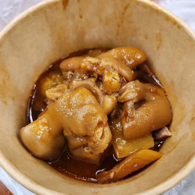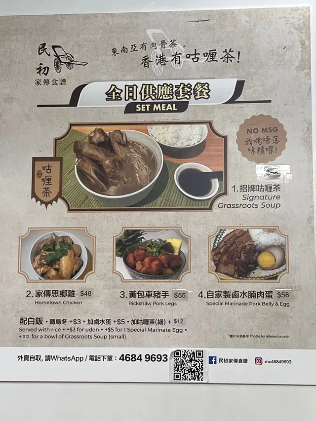 上星期在灣仔區辦7O人的到會,因颱風關係两日前先聯絡小店,他們效率很高,用心設計菜單,除了招牌菜南洋風味咖哩雞,鹵水蛋/腩肉,還有特別安排的健康炒時蔬,咖喱豆付及秘製醃菜。招牌咖哩含有濃郁的椰汁香味外,偶有一絲絲炒香了的椰絲,另人陪感驚喜!鹵水色香味俱全,配搭五層的花腩肉,蛋及雞翼,味道一绝,不油不膩。健康炒時菜是家的味道,配搭清新健康。 選購食材尚盛用心,雞翼好大隻,雞腿肉厚,時令蔬菜。讓我們最感到他們的誠意是每一道菜式都好似酒店自助餐一樣預備了名牌,很有水準的食店,下次會試試他們的秘製咕喱茶及乞衣雞,很期待!…查看更多