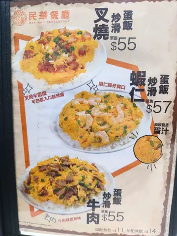 大明里民华餐厅,熟悉的大埔街坊知道它素以盅头饭与鱼蛋粉面著称,均有口碑。我却独爱其碟头饭,其中尤爱叉烧滑蛋饭,简单,饱肚、味美,完全系性价比之选。一碟美味嘅叉烧滑蛋饭要具备咩条件呢?这碟饭表面简单,其实易学难精。在我看来,滑蛋要够嫩、叉烧要够香、豉油要够浓,可谓三位一体,缺一不可。坐低嗌咗唔够十分钟已经便已上台,热辣辣!一层厚厚的叉烧嫩蛋舖满晒成咗饭山,有如冚被,量大抵赞!第一啖先食原味,入口蛋味香浓,似系湖北蛋,随不及日本蛋,但50几蚊已经算口咁,口感上嫩到无朋友,佐以粒粒半肥瘦叉烧,叉烧咸香可口,有少许炙烤香味,惟略显切得太碎,有损口感。第二步当然要注入灵魂———煲仔饭豉油,呢度嘅豉油味偏甜,质感浆口,偏瑞士汁的味道,完全中晒我sweet point,令人口不停蹄,一啖接一啖。另外值得留意个细节位系,个饭嘅口感非常烟韧适中,系典型长身丝苗米,不似坊间软腍腍的白饭,毫无诚意可言,「饭有饭味」如今竟成为抵赞点,真系食风日下,煮德沦亡!未几耐,一碟味美量足的滑蛋叉烧饭已经祭入我五脏庙中,以呢个价钱食到呢个质素,大埔嚟讲应该都无咩诈型㗎啦,我每次由九龙塘南下返乡,都要一解「乡」愁,可见呢碟饭嘅魅力!