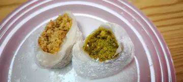 糯米糍size巨型,外皮好薄好烟靭,入边馅料多到满泻!今次试咗五款唔同口味: 传统芝麻同花生馅非常有水准,充满香味又唔会过甜;近期爆红嘅开心果馅都唔错,食得到淡淡开心果香;栗子馅系蓉状偏甜类似豆沙嘅质感,都有栗子味;最惊喜嘅系榛子馅,榛子味非常香浓,推荐大家试吓!查看更多