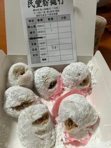 ‧₊˚ ୨୧ ˚₊‧ ⋆𐙚₊˚⊹ ྀི ⋆౨ৎ˚⟡˖ ࣪ 𓈒 ˖ ࣪ 𝜗𝜚‧₊˚ ୨୧ ˚₊‧ ⋆𐙚₊˚⊹ ྀི ⋆౨ৎ˚位于荃湾嘅民丰粉面行,呢间老字号开业超过60年,系小编由细食到大,主打卖糯米糍、韭菜煎饼,见到有新出嘅开心果味糯米糍,即刻心郁郁买嚟试吓( ⸝⸝•ᴗ•⸝⸝ )੭⁾⁾✌🏻✨花生糯米糍 $7推荐度:9.3/10呢款喺心中嘅第一位🥇糯米皮好薄,皮薄馅多,花生馅加入咗砂糖,花生粒炒得好香,馅料份量好多,一啖咬落去好多花生馅,超满足!!!✨✨黑芝麻糯米糍 $7推荐度:9.1/10香浓芝麻味,芝麻馅加入咗砂糖,呢款会对比花生味再甜啲,馅料份量同样好多,每粒都好饱满🤏🏻正(๑❛︎ڡ❛︎๑)✨开心果糯米糍 $13推荐度:8.4/10糯米皮烟烟韧韧,开心果碎加入咗砂糖,同样皮薄馅多,但开心果味相对花生及芝麻味冇咁浓郁,而且会甜啲🥹💡温馨提示: 买五个先会有盒装住~食唔晒记住放雪柜,室温放到第二日好易变坏!!女小编👧🏻:味道:9.1/10服务:8.7/10性价比:9.5/10📍民丰粉面行 (荃湾)荃湾荃湾街市街35号地舖‧₊˚ ୨୧ ˚₊‧ ⋆𐙚₊˚⊹ ྀི ⋆౨ৎ˚⟡˖ ࣪ 𓈒 ˖ ࣪ 𝜗𝜚‧₊˚ ୨୧ ˚₊‧ ⋆𐙚₊˚⊹ ྀི ⋆౨ৎ˚查看更多