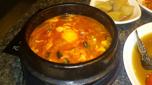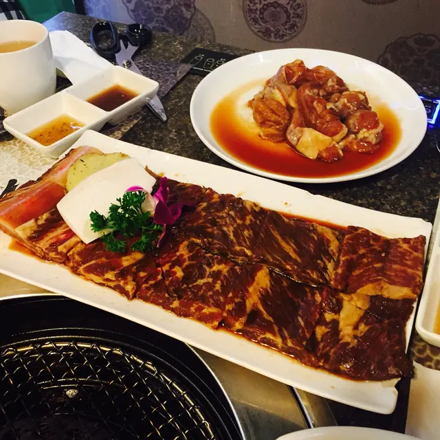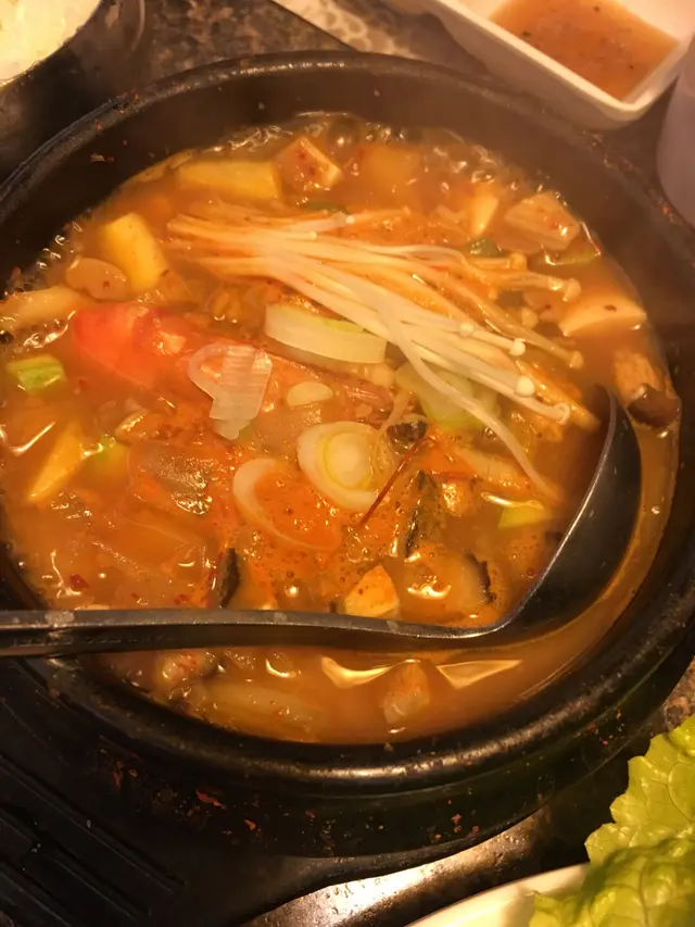 成班8個女同事一齊出嚟尖沙咀瘋狂購物,行到攰已經九點幾仲未食飯。唔想周圍行就由偽韓國媳婦同事帶路行咗入山林道食。安排我地座房,未坐低就已經擺好晒前菜,泡菜(唔過酸夠新鮮)、酸蘿蔔絲(食到尾佢救左我地因為可以消滯再繼續食)、醃黑豆(唔係度度有得食)。呢間其實我之前食過不過咁多人一齊食好開心可以乜都叫。見到餐牌梗係話乜都食一出嚟叫咗個$1388四人餐先之後再散叫野。餐包括牛肋骨、肉眼扒、雞肉、帶子、泡菜煎餅、人蔘雞湯、石頭鍋飯、韓式炒粉絲。另外叫咗豬手、燉牛肋骨、炒年糕、海帶湯、泡菜豆腐湯同五花肉,openrice bookmark送左我最愛既燒豬皮。芝麻葉、菜、蒜同前菜無得refill傷心死⋯⋯無包菜我食唔到咁多肉🙈以為四人餐份量會好少點知原來份量都夠。牛肋骨、肉眼、豬皮有專人幫我地燒,可能怕我哋燒焦啲靚肉掛🙄其他呢我哋就自生自滅。啲靚肉係真係好味,牛肋骨有濃郁牛肉味但唔老(姐姐燒得真係好),肉眼甜肉質軟。豬皮係我最愛梗係好重骨膠原好有彈性超級膠質。五花肉燒到脆卜卜不過同事燒到有啲乾。點提供既醬救番佢😂雞肉就麻麻哋,帶子都OK大粒嘅但唔鮮味,泡菜煎餅就多夠辣,人蔘雞湯好大隻唔夠滑,冇乜人蔘味,只見到一粒蔘。海帶湯普通。豬手勁大碟😻,皮勁滑好好味,肉又夠冧,一啲都唔鞋入口即溶,配埋辣醬生菜同蒜一齊食一流。炒粉絲好大碟有青口魷魚圈唔油但無乜麻油味,粉絲質地好彈牙都炒得入味唔鹹。韓式炒年糕個味好好味,中間有啲魚糕,年糕唔韌。個汁就真係辣但係辣得來好好味嗰個辣住出汗都要食。燉牛肋骨又係好味,泡菜豆腐湯配飯上,雖然好飽但係都係個個爭住食。石頭鍋飯郁都冇郁過⋯⋯太飽啦。眼闊肚窄咁叫實食唔晒要打包左個飯。埋單仲每人俾左杯蘋果醋我哋消滯添。…Read More