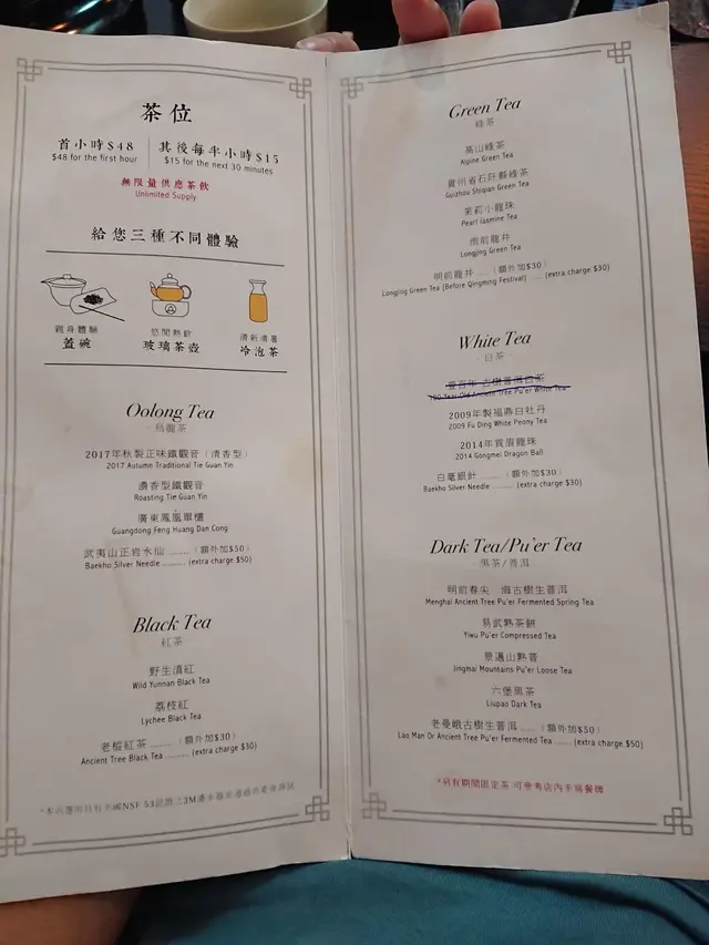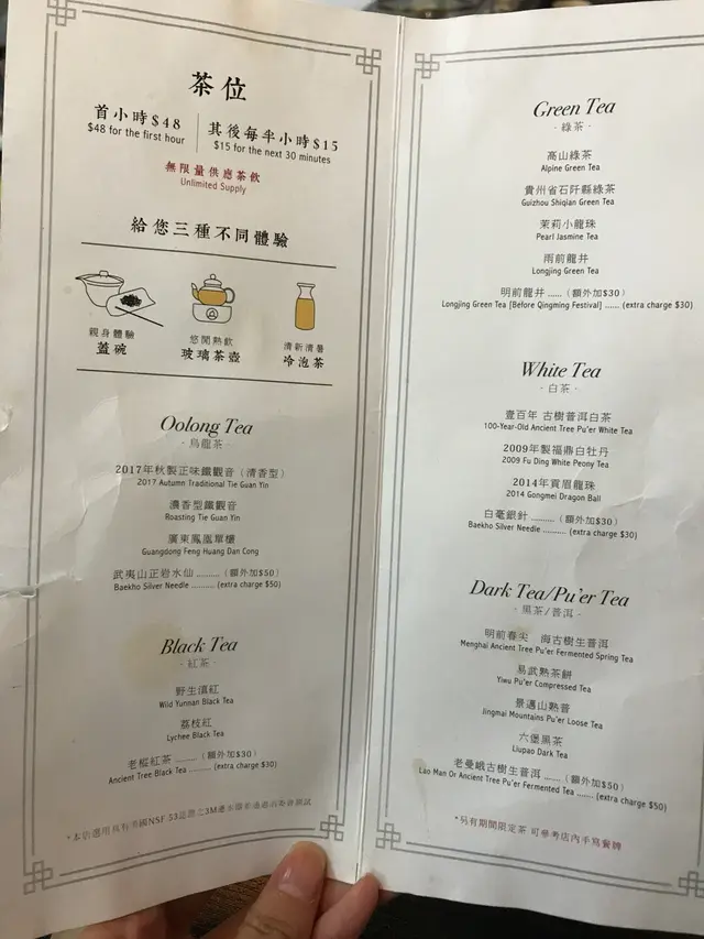 之前都未有去過哩D真係飲中國茶既地方, 感覺好新鮮... 冇想像中咁古老, 反而有文青既感覺... 可能因為店主都係一位90後既後生女, 所以一入到店就有種小清新既氣息😆🌱有多種茶類可以揀, 白茶, 綠茶, 黑茶等等~ 普洱仲有多種茶餅選擇... 中意飲普洱既一定唔可以錯過😁 揀好茶, 揀埋沖泡既方式, 可以揀蓋碗,/ 玻璃茶壺/ 冷泡~ 冷泡數量有限❗ 如果你揀蓋碗, 就會全程有店主教你自己沖, 可以感受埋泡茶既樂趣🤪 而玻璃茶壺就會有預先泡好, 拎到黎直接飲就OK~ 不過無論揀邊種方法, 係沖之前店主都會先拎你揀既茶葉俾你聞下先再拎去泡👃🏻OVER ALL黎講, 哩到環境真係好舒服, 又靜... 而且價錢唔貴, 頭1個鐘$48, 之後每半個鐘$15~ 仲有小食可以食....查看更多