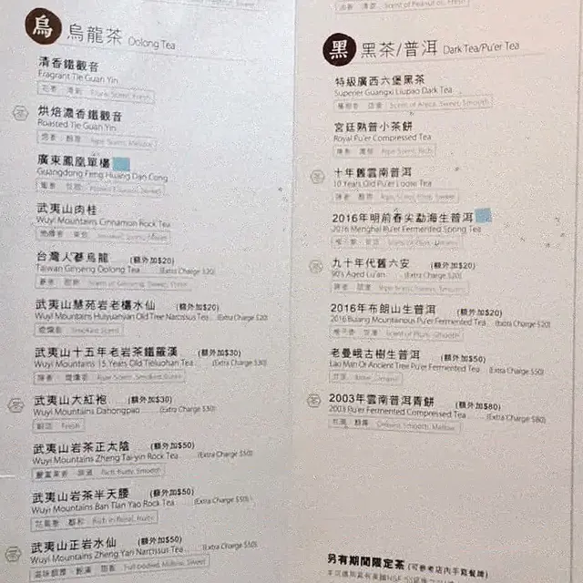 品 茗茶不過兩種姿態,浮、沈;飲茶人不過兩種姿勢,拿起、放下。人生如茶,沈時坦然,浮時淡然,拿得起也需要放得下。收費方法 🍵 首小時$48,其後每半小時$15呢度有3種玩法:1。蓋碗(跟負責人學沖茶)2。玻璃茶壺(坐低等人沖茶,自己嘆茶)3。冷泡樽(呢日未見人叫,但好似要預訂先)我地叫左一個「蓋碗」,一個「玻璃茶壺」。前者揀左「武夷山十五年老岩茶鐵羅漢」,後者揀左「2003年雲南普洱青餅」。鐵羅漢帶煙燻香,飲落特別回甘。負責人教泡茶好有耐性,幾過癮。份茶葉最多可沖8-9次,計番價錢其實好抵。普洱青餅飲落咁滑同醇厚,用玻璃茶壺就唔洗自己沖,可以慢慢嘆👍🏻水墨青花 旺角旺角道97號華懋王子大厦1樓H室-相關hashtags:#ysadrinks#ysafood旺角#ysafood中式#ysafood小店查看更多