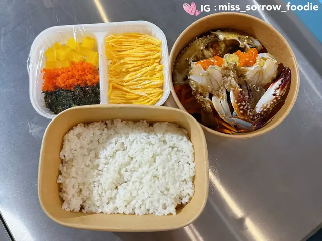呢間店舖被稱為「全港最好食韓式醬油蟹專門店」,主打各款醬油同辣醬生醃海鮮🦐最近門市更設有堂食位置,售賣每日新鮮即製嘅正宗韓式便當🇰🇷💗原隻醬油蟹便當 ($248)選用韓國延坪島直送藍蟹雌蟹,蟹肉飽滿而且晶瑩剔透,有滿滿鮮橙色蟹膏,醬油醃得好入味,味道咸鮮而且完全無腥味🦀白飯拌入雞蛋絲、紫菜、飛魚籽同醃黃蘿蔔粒,然後加入蟹蓋入面撈勻,絕對係米飯小偷🍚💗辣炒濟洲黑豚豬便當($68)辣炒濟洲黑豚豬肥瘦適中,用韓式辣醬炒香,味道辛辣惹味🌶️再篤穿太陽蛋將蛋汁撈入飯中,送飯一流🥓配菜方面有韓式炒粉絲,食落麻油香味好突出🍱…查看更多
