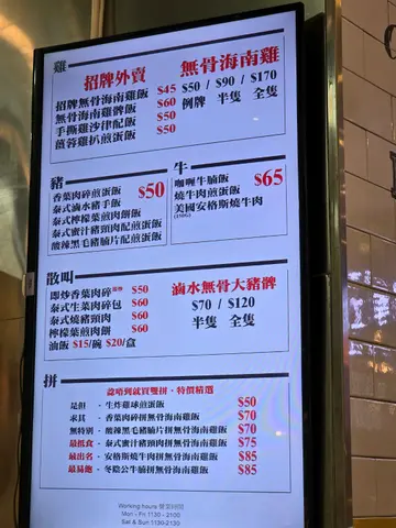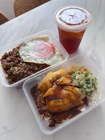 开咗咁耐,第一次食(可能转过手?餐牌好似有啲唔同🤔) 就咁睇餐牌同埋套餐都几抵食🤫买咗无骨海南鸡饭同泰式卤水猪手饭黎试吓😚返去先知佢已经淋晒啲酱汁喺面🫢鸡肉都几滑,几多青瓜做配菜,好多白饭😂猪手味道都唔错够味,系有件明显有毛😅佢另外有青色酱汁分开上可以沾,有青瓜又有少辣酸菜配埋,酸菜好好味☺️套餐有埋嘢饮拣咗冻泰式奶茶,唔会太甜都可以试🤪…查看更多