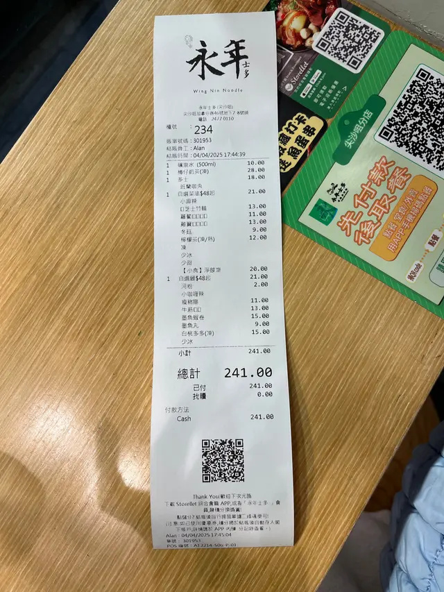 永年士多系以前中学成日lunch都会食,因为系学校对面,今次第一次黎尖沙咀呢间分店食!上网睇到有推广 $99 2人餐,包两碗三𩠌车仔面、两款小食,仲包两杯冻饮或热饮,冇加一!今时今日平到咁真系唔敢相信😆而且份量十足🔥🔥🔥食完2人餐已经好饱!不过食完之际,睇到有$19 碗竹升面既广告,太平忍唔住叫咗嚟试吓,嚟到真系有惊喜!碗面有猪肠同萝卜,而且竹升面既份量亦十足,面好弹牙!得闲路过都可以嚟试吓食!又平又正❤️…Read More
