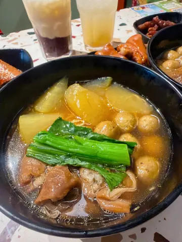 赶时间下场活动,都系食碗面比较好。发现逸东酒店,依家都有间永年,元朗总店未试过,不过过去试下同尖沙咀有咩分别都好,一去到除左经典,都发现有新嘢。等紧嘅时候,欣赏下呢度装修车仔餐牌坤记云吞牛腩捞面 $66 (竹升面) 微咖喱辣 食车仔面,原来都可以配生面。永年同坤记竹升面合作,车仔面店都食到云吞捞面。面爽滑弹牙,云吞皮薄馅靓,猪肉配一只大虾。加上永年嘅配方,香甜嘅猪肠汁,同好辣嘅咖哩汁,加少少已经够,完全系车仔面风味。牛腩够腍,而萝卜最有惊喜,煮得入味无渣,冰糖之后都有少少咖哩辣味,调味好特别。炸腐竹 +$9黑白腐竹都非常酥脆,系有火锅响铃卷嘅感觉,如果汤底再热啲,可能更有层次啦!大碗面套餐 走辣 $76出前一丁 +$2 =78大碗面真系好多料,猪肠、陈皮鱼蛋、萝卜、猪红 、猪皮 、鸡翼、鸡翼尖、 鱿鱼、红肠同两条菜心,出名嘅配料都试齐,每样食材都好入味。面底唔要平时嘅油面,试下出前一丁,佢个麻油汤底配卤水汁嘅香甜,增加左唔少层次,竟然几夹!腐乳通菜 +$22通菜爽脆冇渣,加咗腐乳酱之后,口感更滑。配辣椒片令味道有层次,不过记得小心辣椒籽,突然咬到就会好辣!🌶️卤水鸡翼 $28 卤水汁带甜味,鸡翼软滑入味,但骨肉未完全分离,肉质少少紧实。整体感觉唔错,有层次。🍗Sun柠乐(罐) $20原来系罐装原味可乐,配黄色西柠,不过柠檬几大片,食左咁多肉都可以解腻。樽仔奶茶 (冻) +$6樽仔奶茶茶味够浓,都够滑香滑,无冰粒避免淡味,不过奶茶本身带少少冰沙,弥补冰冻感,感觉特别新颖。🧊总计 $229…查看更多