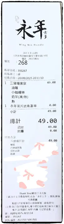套餐:三猪(红、皮、肠)面+奶茶49鱼蛋:免费味道:个汤汁好惹味,但系食多几啖就已经好辣了,都只系叫咗小咖喱辣~~~~猪红比较企身,唔太似传统𠮶啲咁软烂(啱我口味~~~~),猪肠猪皮鱼蛋都系正常好食(餐牌好似揾唔到呢个鱼蛋小食?)仲有半条菜心当均衡