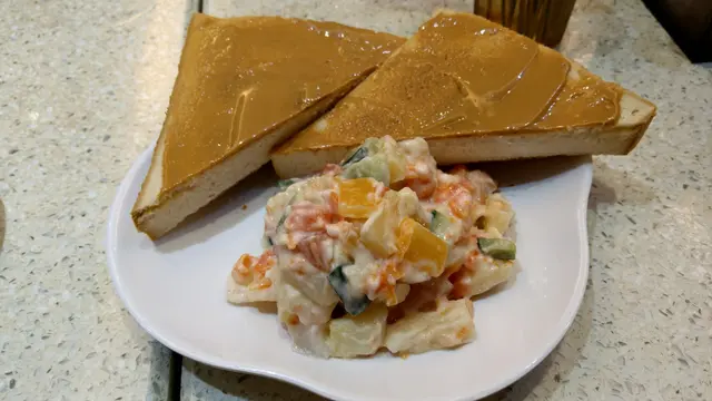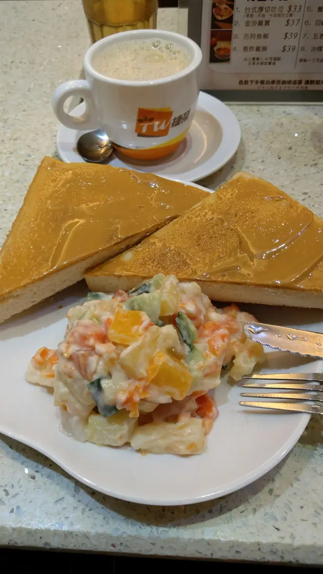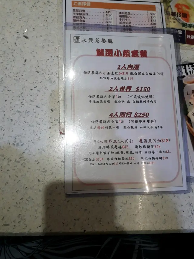 位於「將軍澳」「新都城中心」商場二期地下,小巴總站旁邊的港式茶餐廳「永興粉麵茶餐廳」,除了交通方便,就連食品價錢也遷就了我實際需要,點「咖喱牛腩飯」加「炸雞髀」價錢不算昂貴,只需要港幣一百元左右。不過「永興粉麵茶餐廳」有一點就教我摸不着頭腦,就是選擇享用白飯配小菜食品,白飯需要選擇跟餐湯一起以「套餐價」港幣十元價錢的「1人自選」「精選小菜套餐」。偏偏「永興粉麵茶餐廳」晚市沒有「咖喱牛腩飯」,結果我需要選擇「咖喱牛腩煲」加十元配套餐「白飯」,至於餐湯方面,我選擇了享用「忌廉湯」。「忌廉湯」味道果然名副其實,充滿來自「忌廉」的甜味,至於「忌廉湯」口感則偏向比較稀。至於主菜「咖喱牛腩煲」方面,「咖喱」汁味道偏向比較辣,「牛腩」實際口感軟腍程度尚可,可惜「馬鈴薯」口感煮得未夠腍。至於晚餐的「雞肉」方面,我選擇了港幣三十五元一隻,看似不算便宜的「炸雞髀」,但是實際上「永興粉麵茶餐廳」「炸雞髀」實際製成品,原來連着很多雞肉,口感也炸得很脆,果主要來自鹽的鹹味。至於餐廳實際環境方面,「永興粉麵茶餐廳」裡面雖然有電視機,不過恰巧電視機播放的新聞報導,在我光顧的時候已經接近完結,所以實際上對我的影響頗為輕微。「永興粉麵茶餐廳」晚餐實際價錢不算非常便宜,就連配套餐餐湯也需要另外錢,幸好餐湯連白飯一起上,所以白飯套餐價錢才不至於變得難以負擔,整餐飯一百二十多元左右,我覺得下次還可以一試。…查看更多