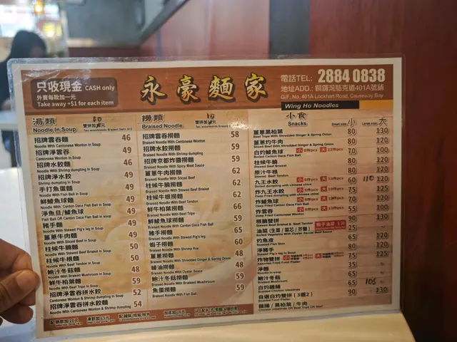 永豪麵家 (湾仔) 网址: https://s.openrice.com/QrLS0pQy500 地址: 香港灣仔駱克道401A號榮華商業大廈地舖 电话: +852 28840838