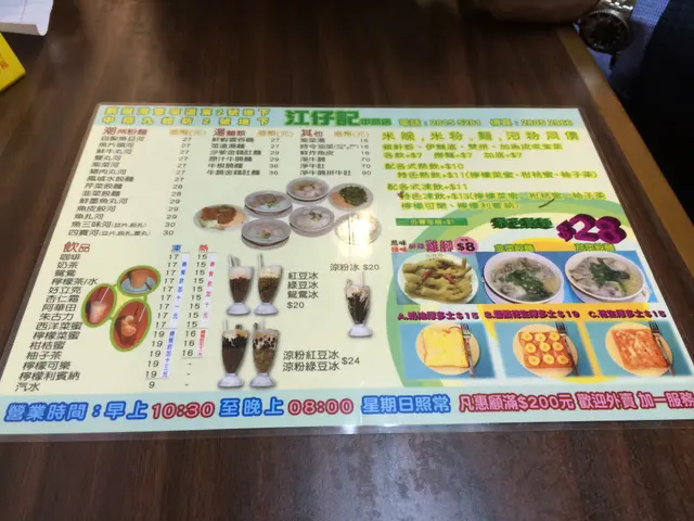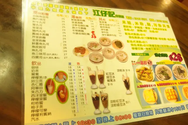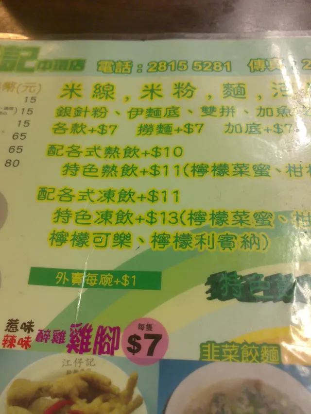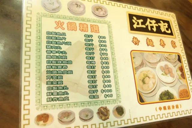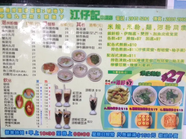 天氣熱, 食粉麵最好, 中環食粉麵通常中午非常多人, 在名食街九如坊也有粉麵店江仔記在此, 門面示出很多明星名人到此品嘗, 是否真的有水準? 試試就知 。其主要供應粉麵, 也有三文治西多士提供, 中午客人不算很多, 最少沒有食客等位。要了主打魚旦粉, 都幾大碗, 魚旦口感不太彈牙, 但有魚味, 河粉軟硬度適中, 都幾滑口, 不俗。後加淨雲吞, 內餡豬肉和蝦肉比例適中, 整體鮮味可以, 但不算特別出色。可能地點原因另此店為明星所喜愛, 其整體水準不算特出, 可以一試。查看更多