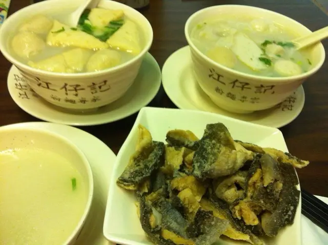 閒日中午來食飯,要搭枱不過大部份麵檔忙既時候都要架啦,所以等位時間值得一讚啦。當同一條街既拉麵店排曬長龍既時候江仔記都只係要排5分鐘,因爲樓上都仲有位坐。就算搭枱d伙記都唔會逼你坐到好逼:)叫咗一碗魚蛋河,湯底夠味,魚蛋夠爽。個人比較喜歡(林)d既河粉,所以覺得口感一流。整體係快,靚,正~如果中午趕時間呢個絕對係一個唔錯既選擇!查看更多