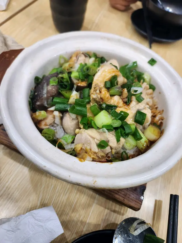 餐厅正常,环境同茶餐厅差唔多,但有收加一服务费。平时唔钟意食煲仔饭,但呢间真心好食,食完会想再食多次。推荐👍🏻 值得一试😋1. 豉汁白鳝煲仔饭味道: 8/10 ⭐️性价比: 7/10推荐: 8/10 ⭐️煲仔饭新鲜热辣辣,餐厅会提供猪油和豉油淋上煲仔饭,饭焦香脆,白鳝一共有4旧,又新鲜又好味,入口即化,食完想再食。2. 窝蛋牛肉煲仔饭味道: 6/10 性价比: 6/10推荐: 6/10 窝蛋牛肉煲仔饭相对普通,牛肉唔系特别好食,饭偏湿且蛋味唔出。虽然煲仔饭一样新鲜,但白鳝出色好多,煲仔饭嚟讲不太建议食呢个。…查看更多