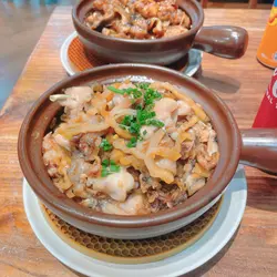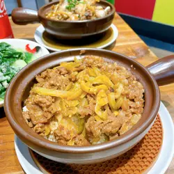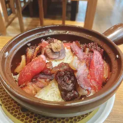 夜晚七点几坐满八成客,但上菜速度爽快,我哋张枱转头就摆齐两煲饭加白菜仔。侍应放低食物时会提「小心烫手」☝️,睇得出细节位有用心。最钟意佢哢煲仔饭全部连原煲上,揭盖𠮶阵仲有「啫啫」声,热气同油香一齐涌出嚟🔥!🍚榨菜牛肉煲仔饭 🌕🌕🌕🌕🌗 牛肉片铺到满一满,肉质嫩滑得嚟带少少纤维感,捞埋甜豉油食超夹!榨菜粒爽脆唔死咸,饭底有完美金黄饭焦🥄,不过靠近煲边嘅米饭稍干,要趁热快啲捞匀。🍚榨菜田鸡煲仔饭 🌕🌕🌕🌕🌕 田鸡腿肉多过预期🐸,每旧都系蒜瓣肉咁饱满,蒸得刚好离骨又唔烂。榨菜今次做配角提鲜,饭粒吸晒田鸡汁同姜丝香,由面到底都系湿润嘅,连平时唔食饭焦嘅老婆都清晒煲底!🥬上汤白菜仔 🌕🌕🌕🌗 菜心够嫩冇渣🥬,汤底清甜但略嫌薄身,如果多两粒杞子提味会更好。好在蔬菜上枱时保持翠绿,冇被煲仔饭嘅热气焗黄。由摆碟到保温都感受到诚意👏,尤其系田鸡饭由头热到尾嘅表现最出色。两个人食晒两煲加菜唔会滞,埋单三百蚊有找💰,系间会想带屋企人再访嘅平民饭堂~…查看更多