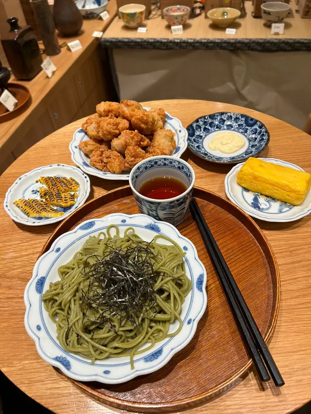 冷抹茶蕎麥麵配唐揚炸雞