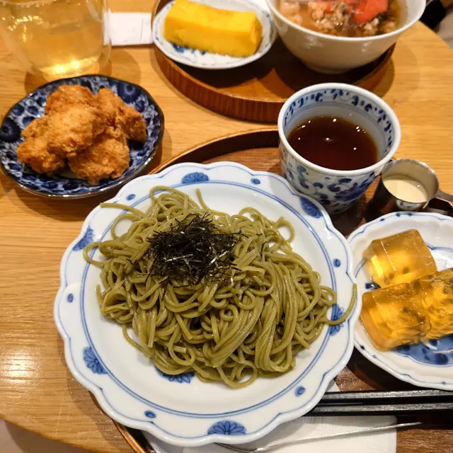 冷抹茶蕎麥麵配唐揚炸雞 Cold Matcha Soba with Japanese Fried Chicken