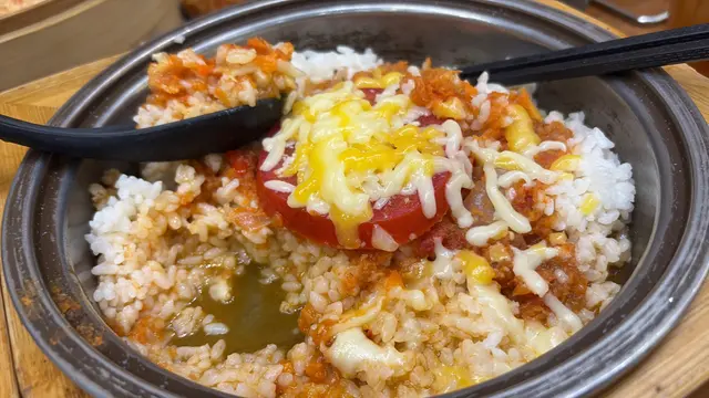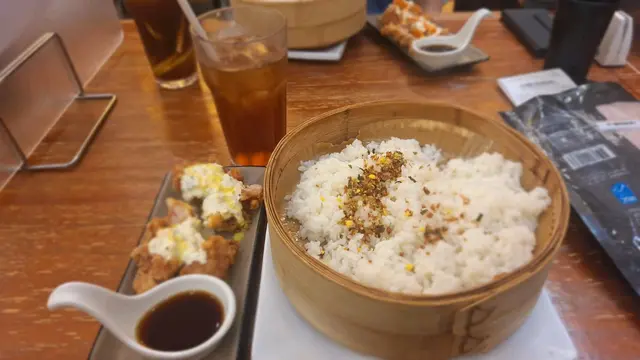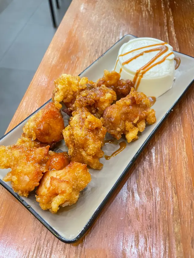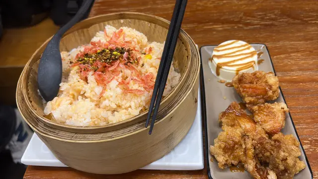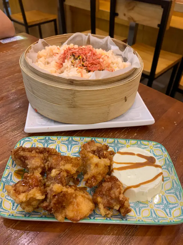 黑糖柚子蒸飯香氣撲鼻,柚子的清新和黑糖的甘香完美融合,每一口飯都帶微甜和果香,令人胃口大開。蜜糖炸雞外皮香脆不油膩,雞肉嫩滑多汁,蜜糖的甜味滲入雞肉,每啖都充滿層次感,令人一試難忘。配上凍頂烏龍茶,茶香清新,入口回甘,正好中和炸雞和蒸飯的油膩,令人感覺清爽。最後的海鹽雪糕冬甩甜品更是驚喜!即炸冬甩外脆內軟,配上海鹽雪糕和焦糖醬,鹹甜交錯,層次豐富。整個套餐無論主食還是甜品都表現出色,絕對值得推介!…查看更多
