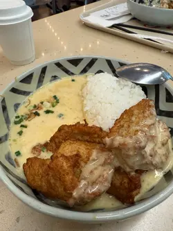 我细细个就开始食沙嗲王了,记得细个睇超级超掌门人时,会经常听到沙嗲王呢个名,佢经常成为奖门人的礼物🤣到中学时,开始同同学放学行街,亦第一次食佢的沙嗲牛肉粉丝,简直惊为天人,自此得闲就会帮衬。估唔到沙嗲王而家喺又一城food court都有分店,唔使再去门市帮衬,而且food court仲唔使收加一服务费。$68沙嗲牛肉粉丝,加幅唔算贵,这个味道,咁多年都冇变,软糯嘅粉丝,吸尽了浓郁的沙嗲汤汁,沙嗲汤底有多种香料条配,层次丰富。另一个沙嗲王名物,就是白咖喱猪扒饭,讲真咁多年我都系钟情沙嗲,而呢个白咖喱,口味唔算辣,偏向甜甜地,一样食得出丰富层次。…查看更多