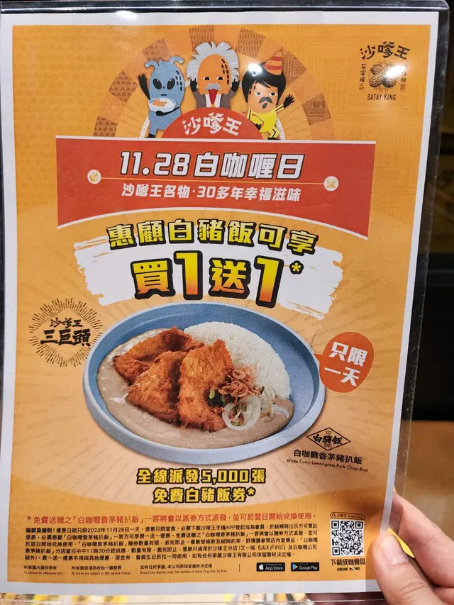沙嗲王 (MPM文華商場) (旺角) 网址: https://s.openrice.com/QrLS0V54C00 地址: 香港旺角砵蘭街240-244號MPM文華商場3樓3A號舖 电话: +852 38500120