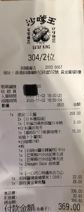 沙嗲王 (黃金廣場) (铜锣湾) 网址: https://s.openrice.com/QrLS0z16400 地址: 香港銅鑼灣軒尼詩道502號黃金廣場5樓 电话: +852 28936667
