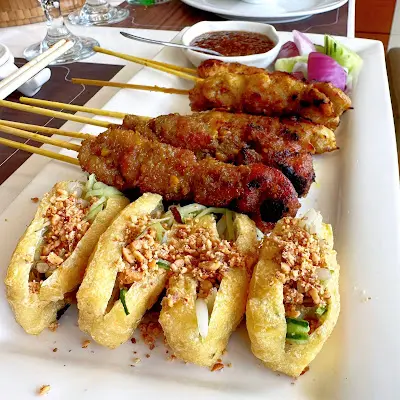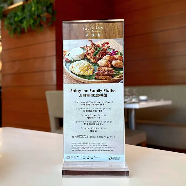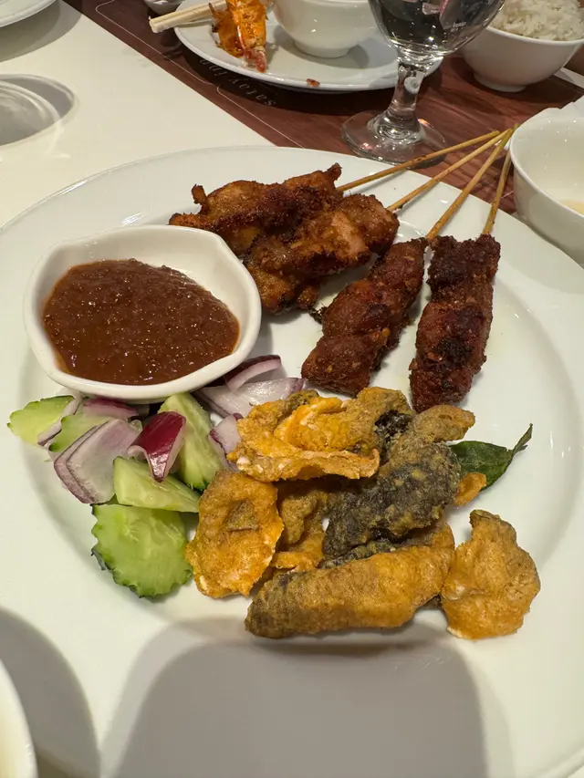 我哋一行六人嗌咗兩嗰新加坡嚐味二人套裝,再加咗一隻海南雞,人均消費大約$300,用酒店嚟計性價比都算高🤔 除咗一個員工服務質素差同埋冇禮貌扣咗分之前,其他員工都好nice🥰 二人餐嘅頭盤係黃金脆魚皮、沙嗲豬肉及雞肉串,佢嗰沙嗲醬先係重點😋 主菜可以以揀椰香咖哩牛腩配印度千層油酥餅或者招牌海南雞飯🤔 我哋因為叫咗一隻雞所以兩份都揀咗咖哩牛腩,特別出色嘅係佢嗰油酥餅,食落唔會覺得油,加埋咖哩汁係出色嘅,不過牛腩就略嫌太瘦🤔胡椒蝦 - 一碟有4隻,都高質,食完一隻會繼續想食🥰蒜蓉咸魚炒芥蘭 - 正常發輝班蘭蛋糕伴雲呢拿雪糕 - 甜品嚟講有啲失色海南雞全隻$528,好貼心咁分開咗兩碟,不過不失,用賣點嚟睇唔算特別🤔 但好食嘅🤔整體嚟講,因為佢係酒店入面嘅餐廳就性價比高,但如果只用食物計就未達標🤔…查看更多