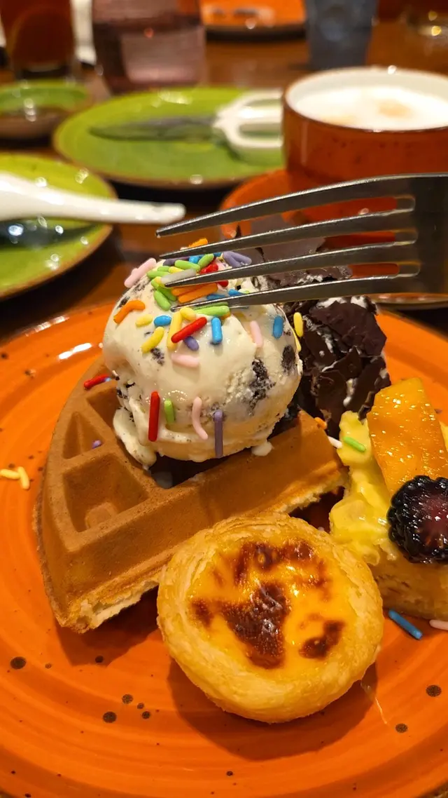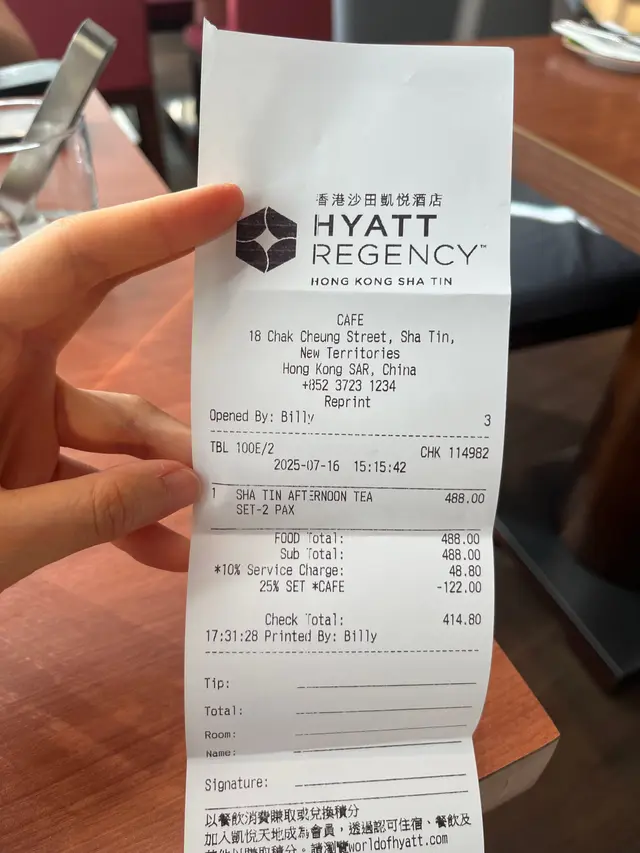 OpenRice的積分即將到期, 見很久沒光顧酒店的自助餐, 便找一間可用OpenRice Rice$的酒店豪吃一番。沙田凱悅酒店咖啡廳是是次的選擇, 經官方網站訂座, 某些日子有機會享高達5折優惠, 可惜OpenRice積分到期前的日子已沒有5折優惠, 經OpenRice訂座, 可享7折優惠。1) Lunch Buffet $4602) 經OpenRice訂座享7折優惠3) all + 10% (以原價計算)4) $367以OpenRice Rice$支付咖啡廳環境寬敞, 有落地玻璃採自然光, 十分舒適。當日光顧, 目測滿座, 食客均斯文有禮有秩序, 不會爭先恐後, 用餐體驗實屬不俗。走了一圈, 見食物款式不少, 賣相吸引, 增添不少食慾。也許太久沒吃自助餐, 節奏有點慢, 亦忘記了食物再補充時未必是同款, 故想吃的, 尤其是甜品, 有部份便吃不到, 造成失望。自助午餐包餐飲一杯, 而自助區可任飲的飲品款式不多, 只提供香橙冰茶和咖啡, 唯香橙冰茶果汁味道略淡。魚生偏瘦, 油脂不多。蝦有蝦籽。希靈魚爽口, 是當中較佳的選擇。本身對需要去殼的海鮮有點抗拒, 故只象徵式取了蟹鉗, 熟蝦和蜆, 蟹腳一隻也沒取。餐廳雖有提供工具, 蟹鉗仍難以去殼, 但鮮味。熟蝦肉質較實, 還是蜆肉美味。吞拿魚汁薄切豬柳片肉質偏乾, 八爪魚薯仔沙律和蕃茄沙律清新爽口。炸麵團香口, 如吃港式油炸鬼般香脆。試了3款芝士, 水牛芝士味道比想像中淡, 其餘兩款芝士味道較濃, 瑞士芝士質感較硬, 布利芝士質感較軟綿。另淺嚐了巴馬火腿配哈密瓜, 薏米沙律和cold cut, 質素不俗。鹹蛋黃炒蝦蝦肉爽口, 鹹蛋黃味道明顯。烤西冷由於冷得快, 邊位的油脂份外礙眼, 肉質偏乾柴。Pizza蕃茄味明顯, 餅底鬆軟, 如屬薄脆形餅底, 口感更佳。炒白蜆殼多肉少, 火腿乾鹹。焗鱈魚肉質乾身偏柴, 配上醬汁, 仍然美味。意大利黑松露雲吞芝士餡較實淨, 本身已很creamy, 但自行灑了芝士粉, 變得有點膩。燴牛面肉大大件, 味濃, 有嚼勁。燒菠蘿多汁, 有助解膩。燒羊架粉嫩, 口感味道均不錯。咖喱豬皮魚蛋咖喱味道雖明顯, 但卻被辣味喧賓奪主。魷魚爽口, 魚蛋雖爽但不彈牙。燒賣大粒, 賣相可以。蝦仁炒甜豆, 蝦仁爽口, 甜豆爽脆。蝦片脆口, 薑汁炒芥蘭青綠爽口。酸菜蒸龍脷柳很滑, 無骨。叉燒炒飯飯粒粒分明, 唯叉燒粒不多。雲吞一口大小, 皮不滑。藍莓芝士蛋糕味道濃郁, 質感軟滑。荔枝玫瑰乳酪蛋糕賣相吸引, 紅色的球加上唧花和荔枝, 簡單就是美。入口順滑, 輕巧清爽, 毫無負擔。朱古力慕絲蛋糕柔滑, 朱古力味濃, 蛋糕底軟綿。芒果乳酪慕絲蛋糕芒果味淡淡, 順滑, 餅乾底添口感。麵包布丁香滑, 配上蜜瓜, 西瓜, 青提子, 紅提子和菠蘿, juicy之餘又有助減飽滯感。雪糕並無標示品牌, 一問之下原來當日供應的是Häagen-Dazs的出品。先來3球雪糕, 雲呢拿, 焦糖脆餅和夏威夷果仁, 3款均重奶香, 各有特式, 吃畢忍不住再添了3球, 雲呢拿, 焦糖脆餅和咖啡味, 感覺滿足。總括來說, 食物款式不少, 只揀選了部份來吃。甜品十分出色, 建議入場後看見想吃的先取, 否則回頭可能吃不到, 因未必會refill同款甜品。沙律清新爽口, 魚生, 海鮮和熱食只屬中規中距。不過以款式和餐廳環境, 如能以5折價格來享用, 實在吸引。…查看更多