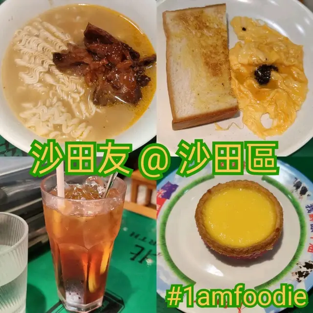 【沙田區】【沙田友】去到呢個位置都冇咩嘢可以寫,不過我想講嘅係,我係住沙田架,所以名符其實係一個「沙田友」。一見到呢間餐廳個名就覺得好好笑,不過雖然聲稱想試,但係理想同現實往往爭好遠,一直都未有機會試。呢間嘢喺石門都開咗一段時間,不過次次都係過門而不入,都食咗好多其他嘅餐廳。最近稿件不足,所以都要的起心肝去食一次。點知一去到冇位喎,我本人係幾討厭等位嘅,所以就過咗隔離陸記食,就係之前寫陸記嗰篇。搵到一次終於再有機會入去,喂又冇位嘅,啱啱有個人走喎,咁我就坐落去咯。唔知點解呢啲搵極都搵唔到位而又突然有位嘅話係有啲開心嘅,好似失而復得咁。不過呢間嘢成日都咁多人,都有啲興趣試吓佢哋啲嘢係咪咁得。入得呢啲茶記,梗係叫個「常餐」啦,主食「沙嗲牛肉麵」又真係一般咗啲,有少少失望添。個「黑松露炒滑蛋」同「多士」就挽回到唔少分數,隻蛋炒得幾有誠意。餐飲我飲「凍檸茶」少甜,都係一貫茶記水準咁啦。個阿姐喺我叫嘢嗰陣無啦啦 sell 我叫「酥皮蛋撻」,而我又唔知點解話 okay 喎。可能都想畀個機會佢哋嘅包餅部,因為好似敏華嗰啲咁,個新鮮出爐蛋撻係幾正。不過好可惜,上到嚟發現佢唔係啱啱焗好,味道亦都一般。我最後食咗個常餐加件蛋撻,夾埋 $66,求其茶記食個晏晝嚟講當然唔平啦,不過佢個炒蛋都幾入到我法眼,只係個沙嗲牛麵真係爭啲。未有機會試佢其他嘢,佢哋成日都咁多人,一定有佢哋嘅過人之處,有機會要食多次。。。(地址:沙田石門京瑞廣場一期地下 G19 舖)#1amfoodie #foodie #hkfoodie #thatfoodiething #hkfood #food #instafood #yummy #foodlover #1ambackup #1am0569 #tasty #globaleats #tastyfood #foodpics #followforfollowback #love #eat #1am沙田區 #沙田 #石門 #沙田友 #沙田友冰室 #常餐 #沙嗲牛肉麵 #黑松露炒滑蛋 #多士 #凍檸茶 #酥皮蛋撻 #京瑞廣場查看更多