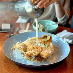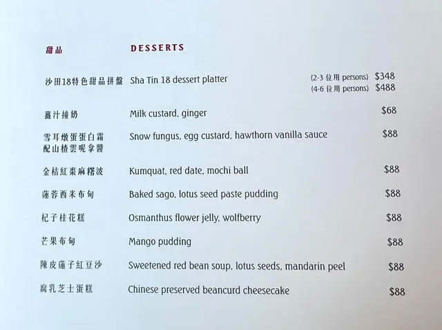 时间: 星期六12:00等候:0 预先电话订座服务: 细心 配得上酒店质素,查问客人忌口,主动提示上菜时间,主动帮客人「针」茶食物:点心三样 : $78-88 /点心1) 羊肉祼 孜然味好重,配酥皮焗,羊味好重 如果爱孜然羊肉,可以一试。(我个人麻麻) 2) 紫薯眉豆素饺 紫薯味不重 配沙葛好爽口,如果眉豆再多一点 豆香重一点 就完美 3) 牛肉球 这个不推荐 牛肉味不浓 仲食到少少梳打粉味,好似普通酒楼质素。片皮鸭3食 半只 $798 需要等70分钟 先上炒鸭松 - 好干身 有镬气 切得好碎,配大豆芽,包生菜🥬 几好食 豆腐鸭汤 - 正常发挥 不惊喜 片皮鸭半只- 果然招牌菜,师父分开 净皮 皮连肉 净肉, 净皮令人好惊喜,松化脆皮 不油腻 就算不夹饼皮 都好好食, 的确好少餐厅食到咁松化的脆口。 净肉也不粗糙,虽然算不上嫩滑,但算不错。龙趸皮蛋脆米汤饭$298 这个真心推荐,性格比超高,份量足够4-6人,龙趸鱼片数量不少 10片左右,脆米分开上 非常脆口 放汤有「渣渣」声,汤饭绝配。 各人都好赞赏这道菜。甜品: 1)柑桔红枣麻薯 - 常温偏冻,吉士柑桔软心,可以一试2) 芝麻汤丸批 - 可以不试,普通汤丸包住蛋挞皮,芝麻又不够热和流心,有点失望总结: 用餐体验好满意,员工服务好积极 细心,虽然点心和甜品未有惊喜,反而主菜好好,值得推荐