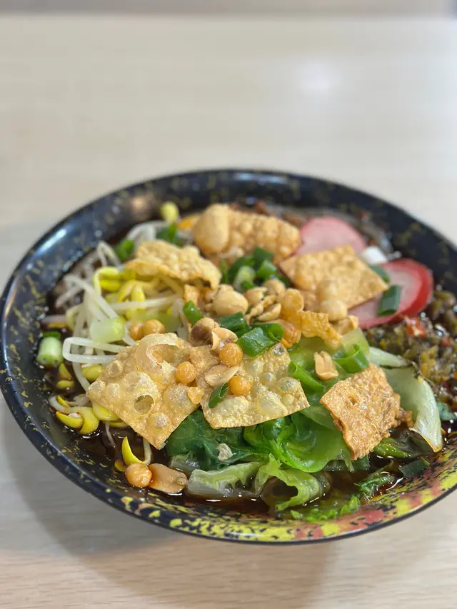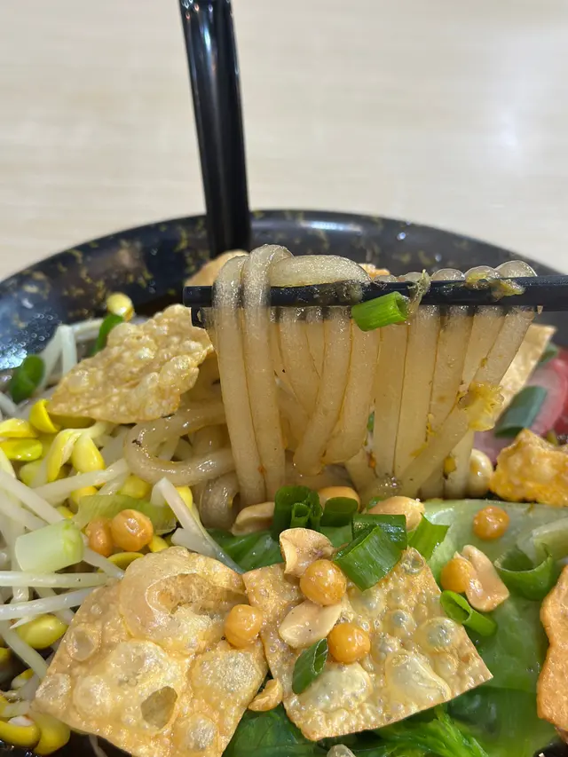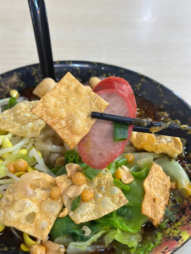 。酸辣粉,分量超級大,配料仲要滿瀉TIM。除咗普通芽菜,榨菜等配料,還配有紅腸同腐竹。紅薯粉Q彈有嚼勁,掛汁能力一流。湯底酸辣平衡,肉碎同花生炸得香口。榨菜粒增加口感層次,嗦粉連湯一齊食特別滿足